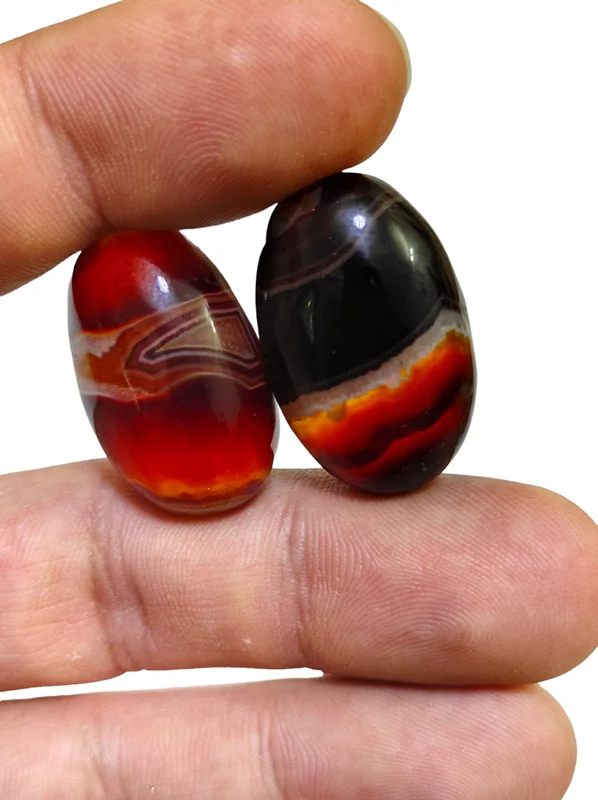 جفت مهره عقیق سلیمانی مصور طبیعی خارق العاده وبینظیر(ضمانت اصالت)اندازه15*28میلیمتر21گرم