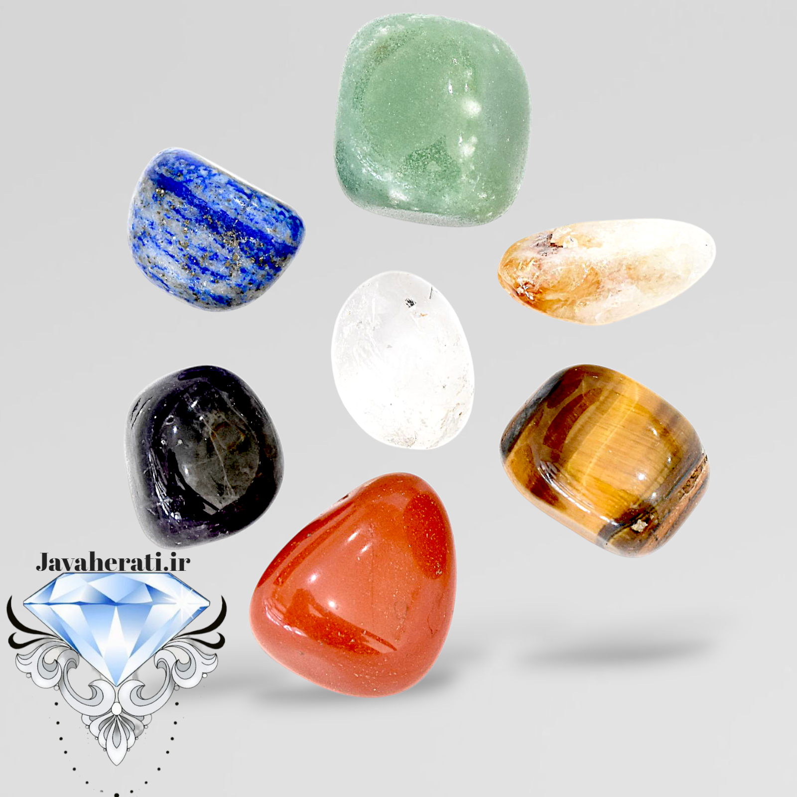 سنگ های طبیعی 7چاکرا جاسپرسرخ-چشم ببر-سیترین-آونتورین سبز-لاجورد-آمیتیست-کوارتز(ضمانت اصالت)