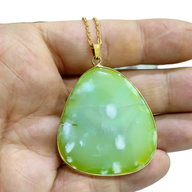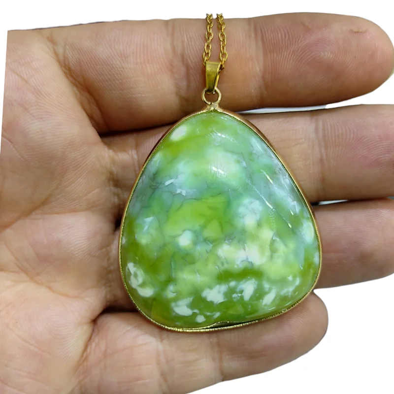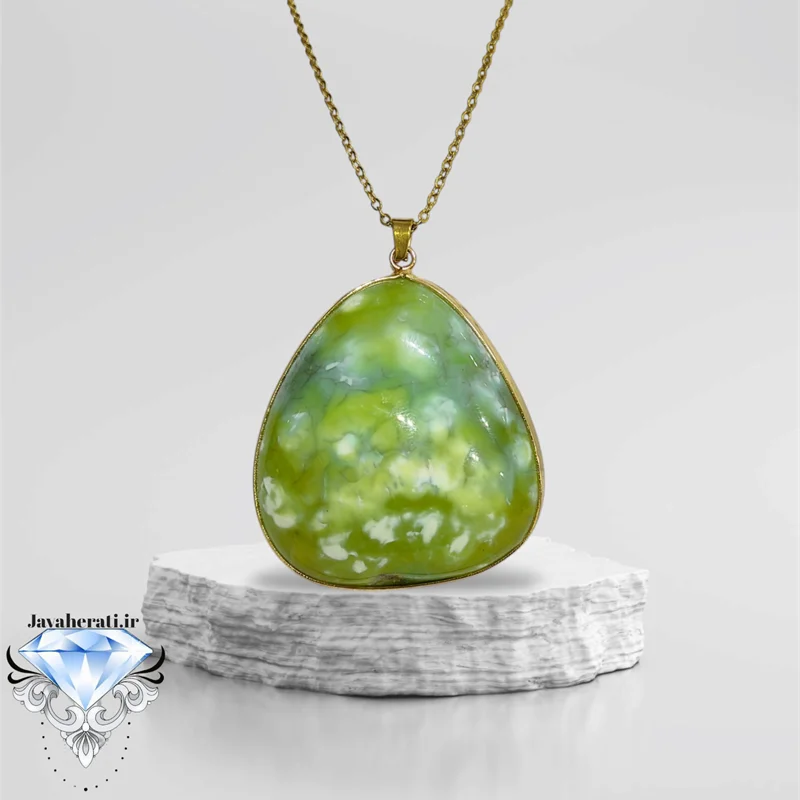 آویز عقیق سبز سلیمانی آفریقایی با قاب طلایی رنگ ثابت (ضمانت اصالت)اندازه 13*42*50میلیمتر وزن 38گرم بهمراه زنجیرطلایی رنگ ثابت50سانتیمتری با گردنبند عقیق سبز سلیمانی آفریقایی، به زیبایی و خاص بودن خود جذابیتی دوچندان ببخشید. این جواهر بینظیر با رنگ سبز عمیق و انرژی طبیعی خود، نمادی از آرامش و تعادل است. با خرید این گردنبند، به استایل خود شکوه و جلوهای منحصر به فرد هدیه دهید و در هر جمعی بدرخشید!