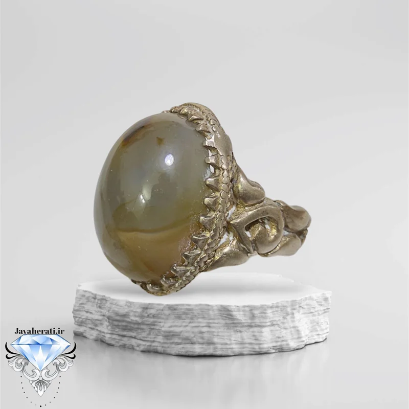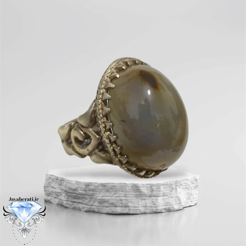 انگشتر عقیق کبود سلیمانی معدنی دامله تراش