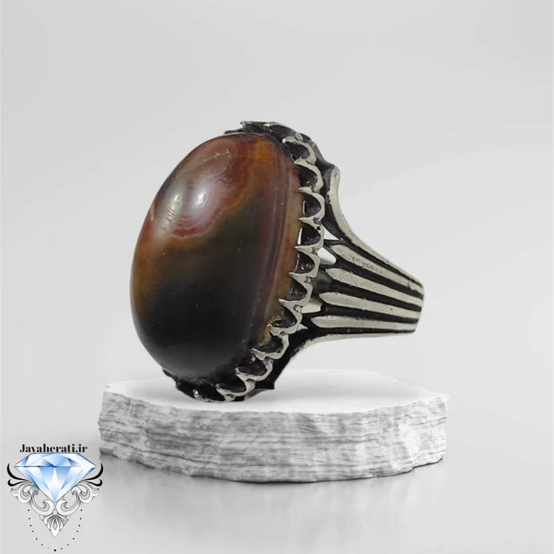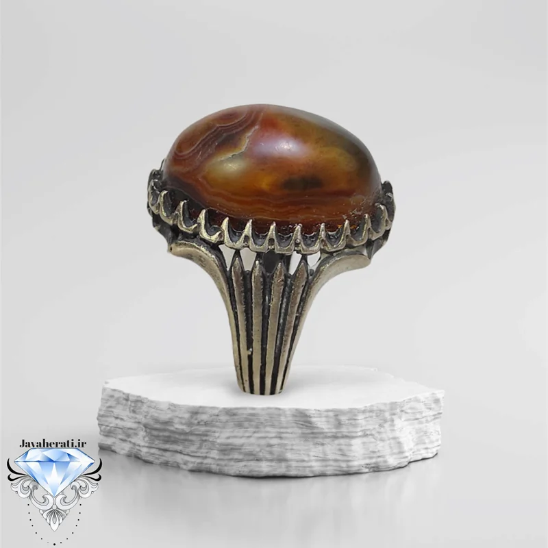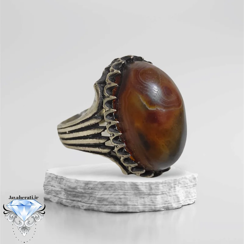 انگشتر مردانه عقیق سلیمانی مصور فوق العاده زیبا و خوش طبع(بضمانت اصل)رکاب زیبا وهنری-سایز62
