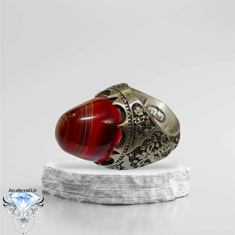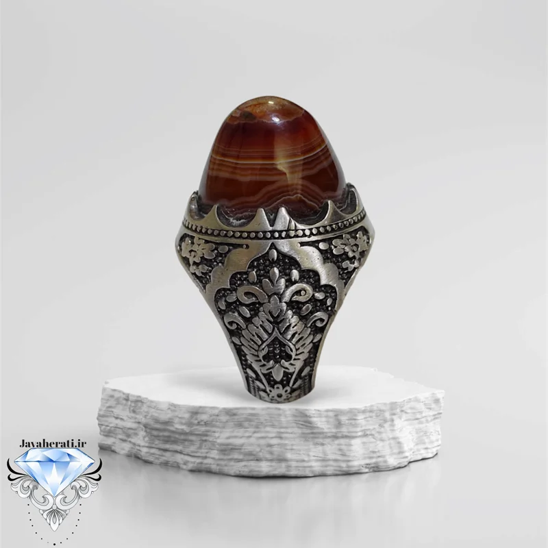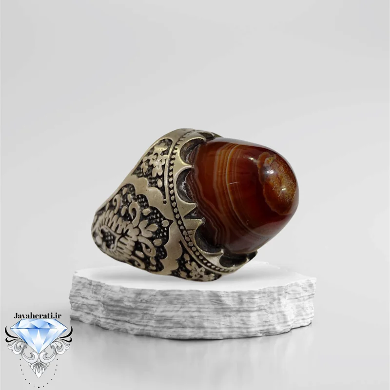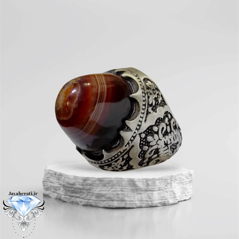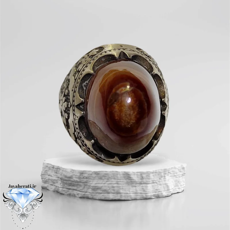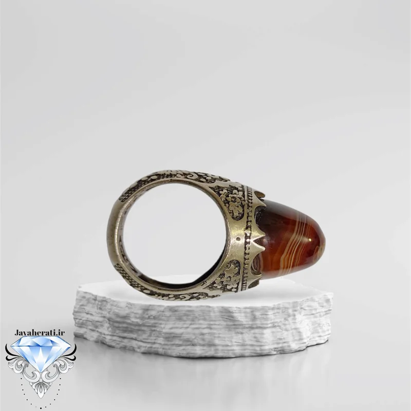انگشتر عقیق سلیمانی کله قندی باطوق های خیره کننده