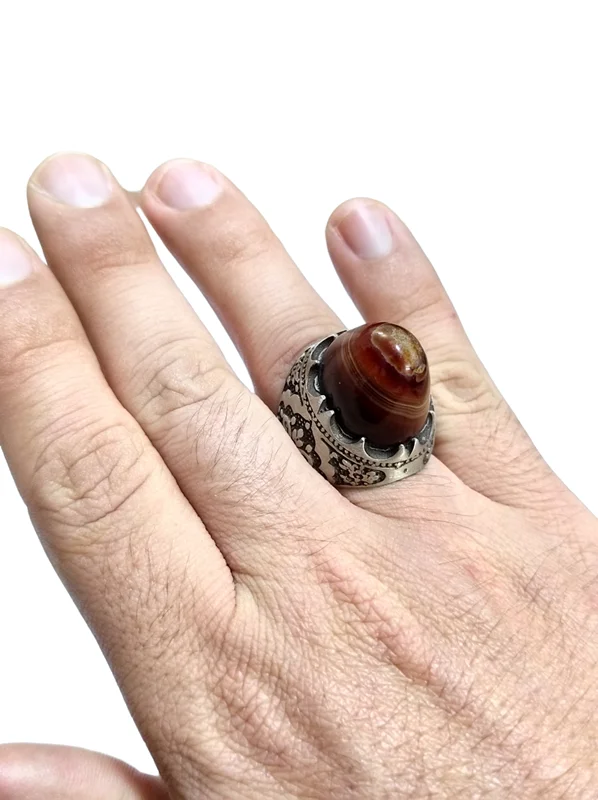 انگشتر عقیق سلیمانی طوقدار خارق العاده تراش کله قندی(بضمانت اصل)-رکاب قلمزنی بسیارزیبا -سایز64