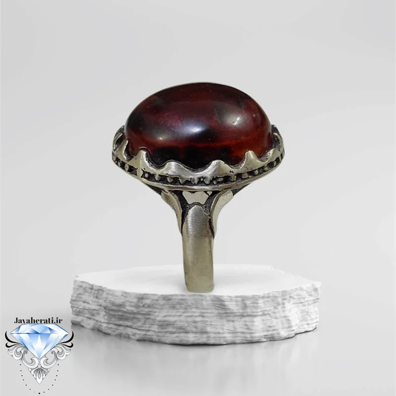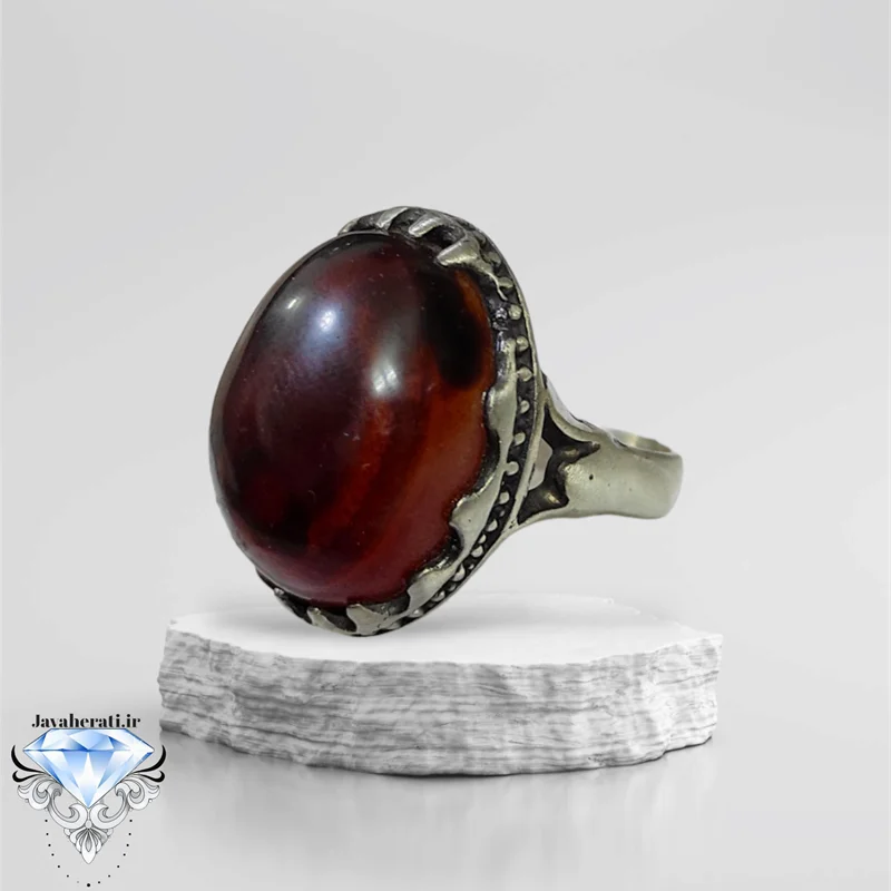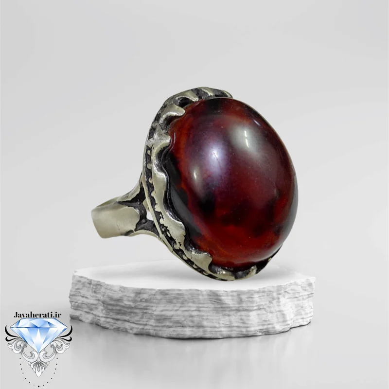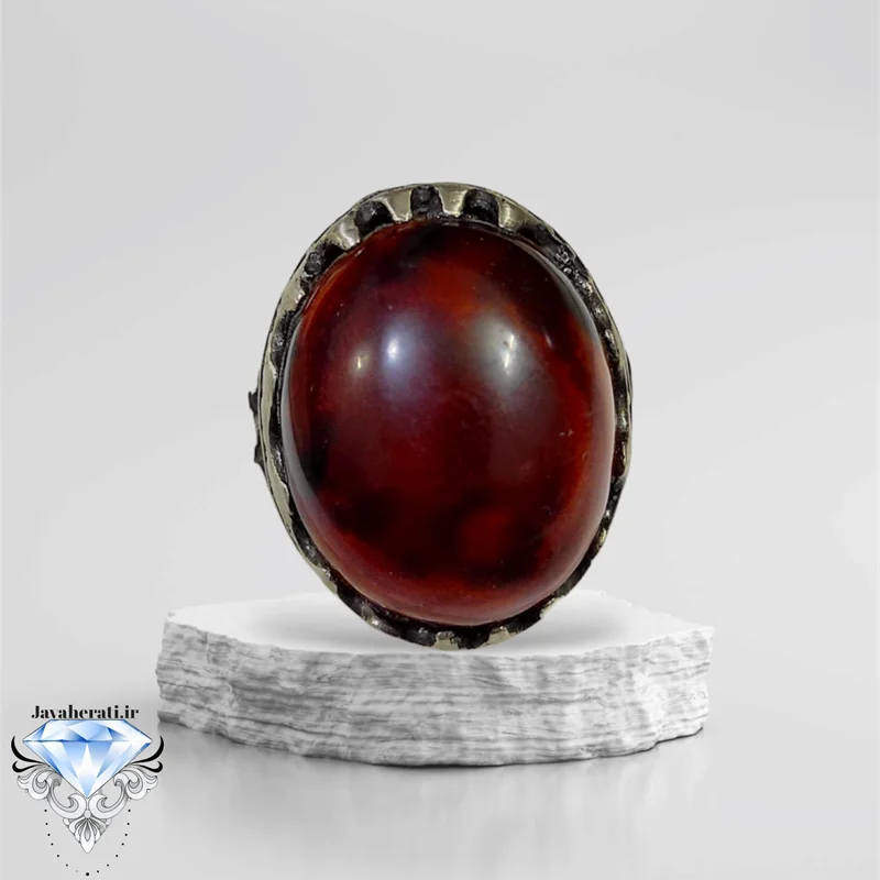 انگشتر عقیق سرخ لکه خونی بسیارزیبا