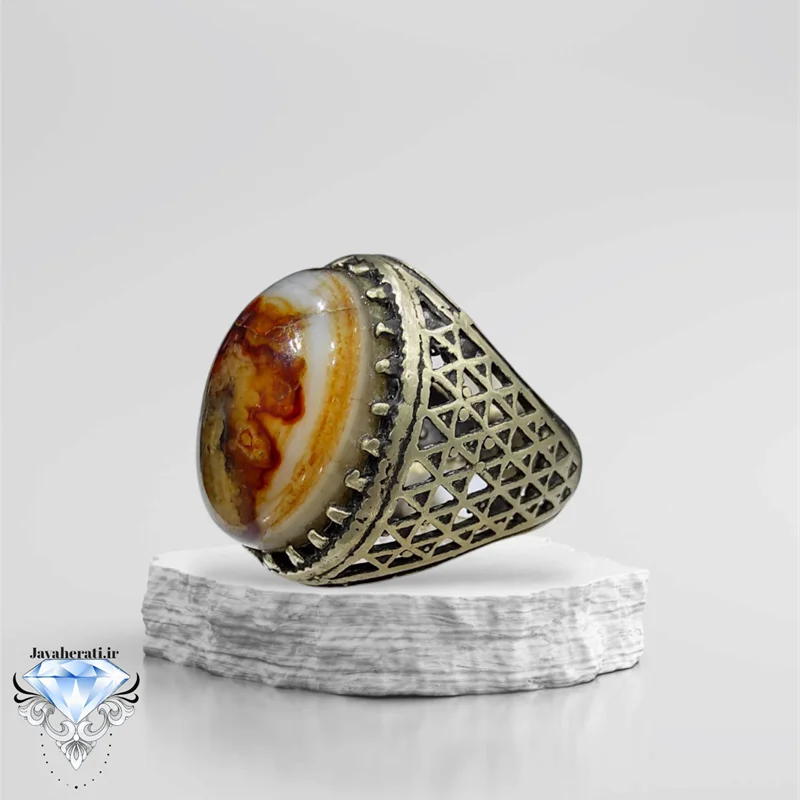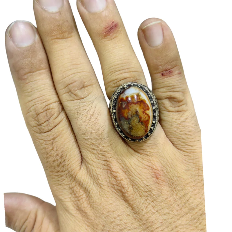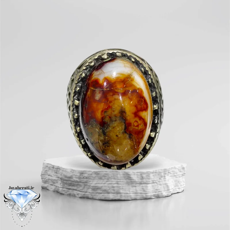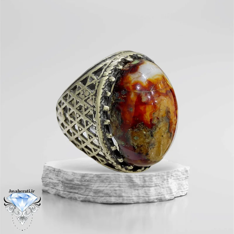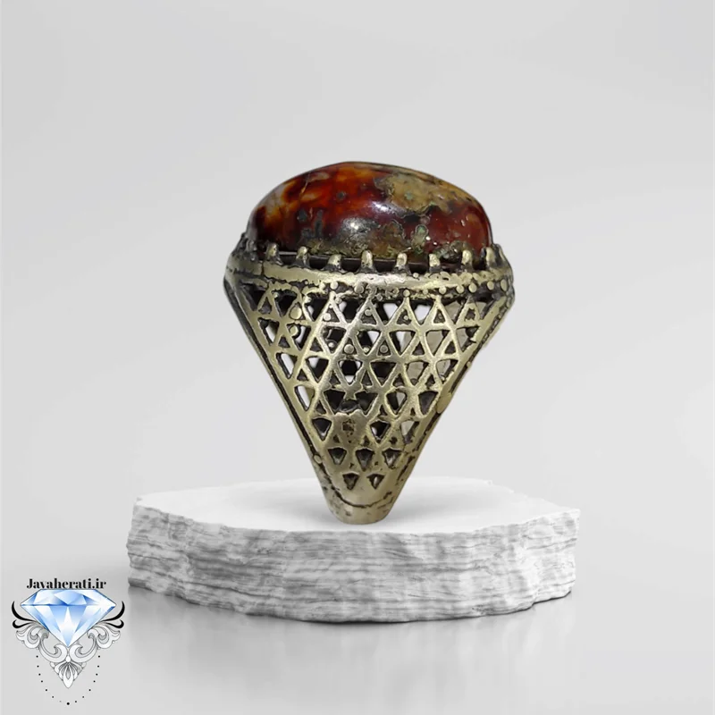 انگشتر عقیق سلیمانی لکه خونی بسیار خاص و ارزشمند(بضمانت اصل)-رکاب زیبا و جوندار -سایز62-63