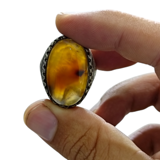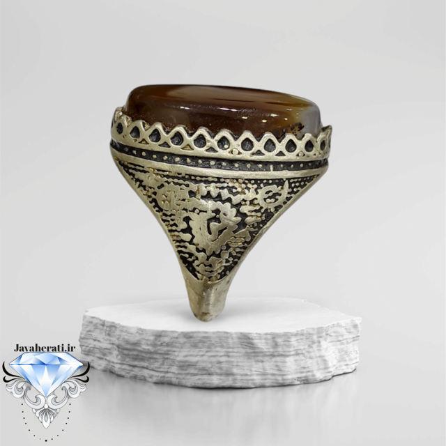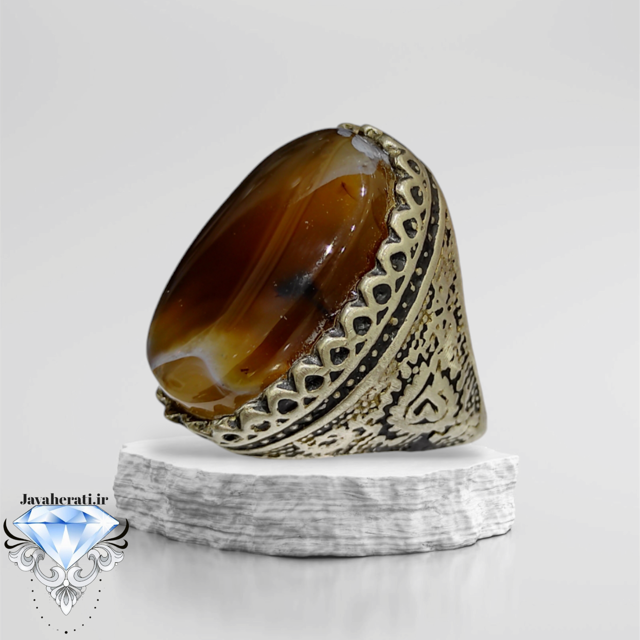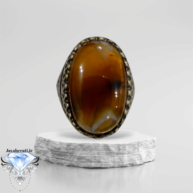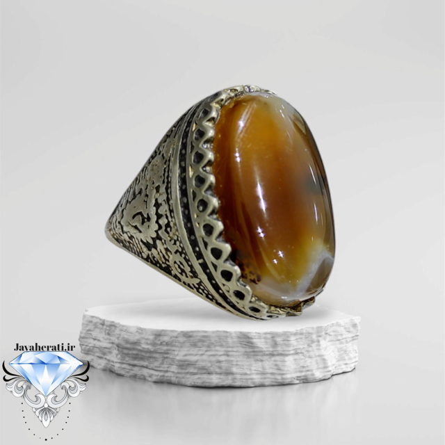 انگشتر عقیق عسلی لونه زنبوری فردوس کاملا معدنی و ارزشمند (بضمانت اصل)-رکاب زیبا و جوندار -سایز64/65