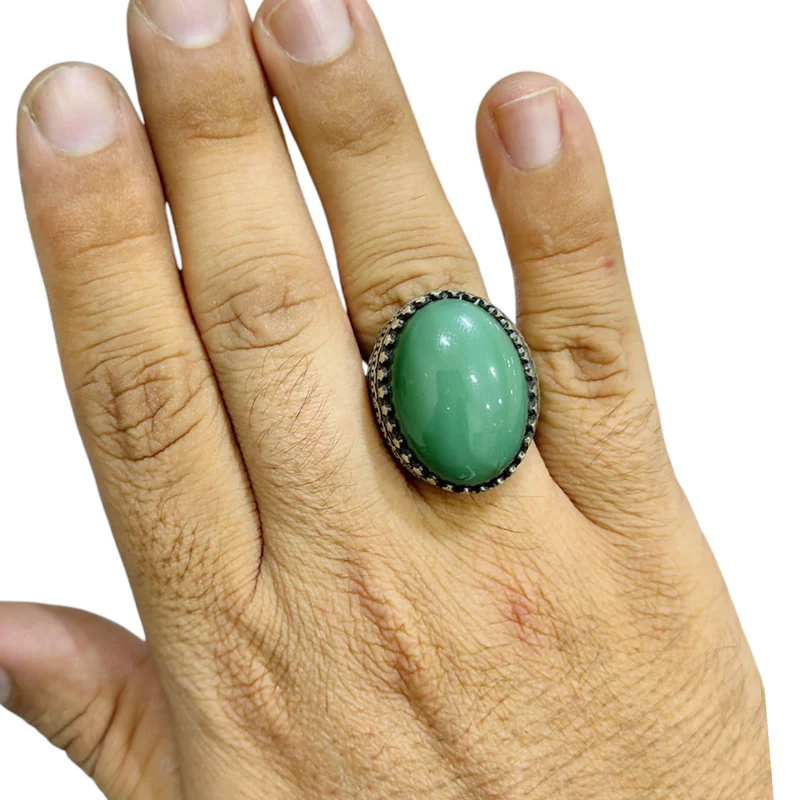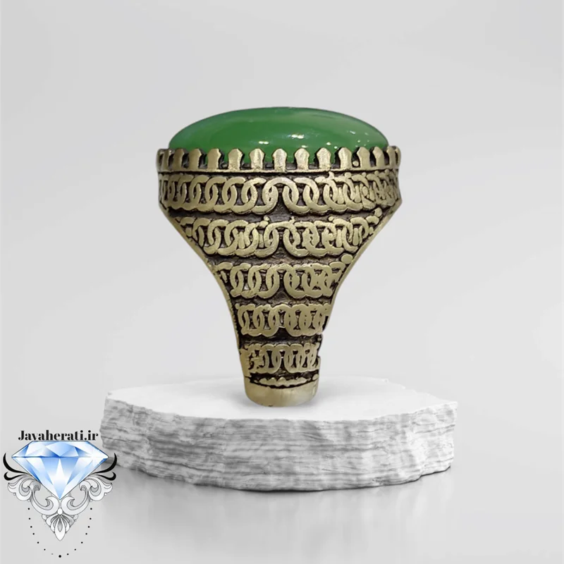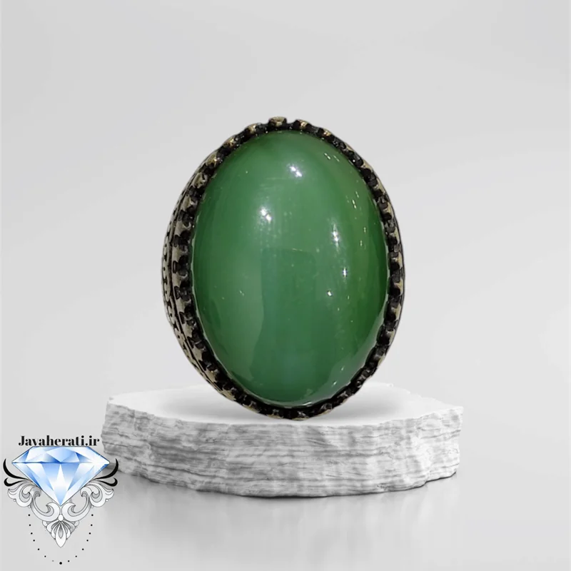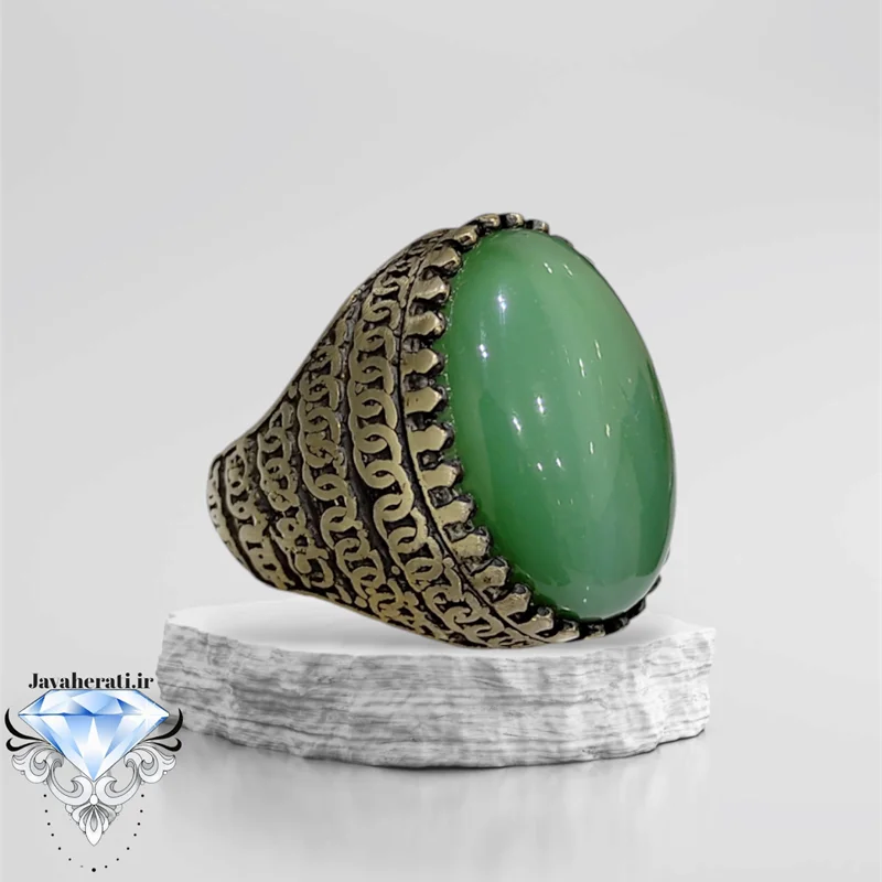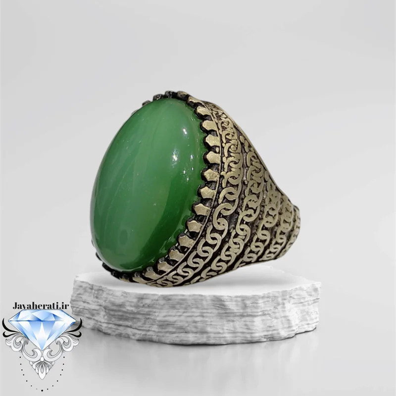 انگشتر عقیق سبز بسیارزیبا و ارزشمند(بضمانت اصل)رکاب زیباوخوش طرح-سایز64