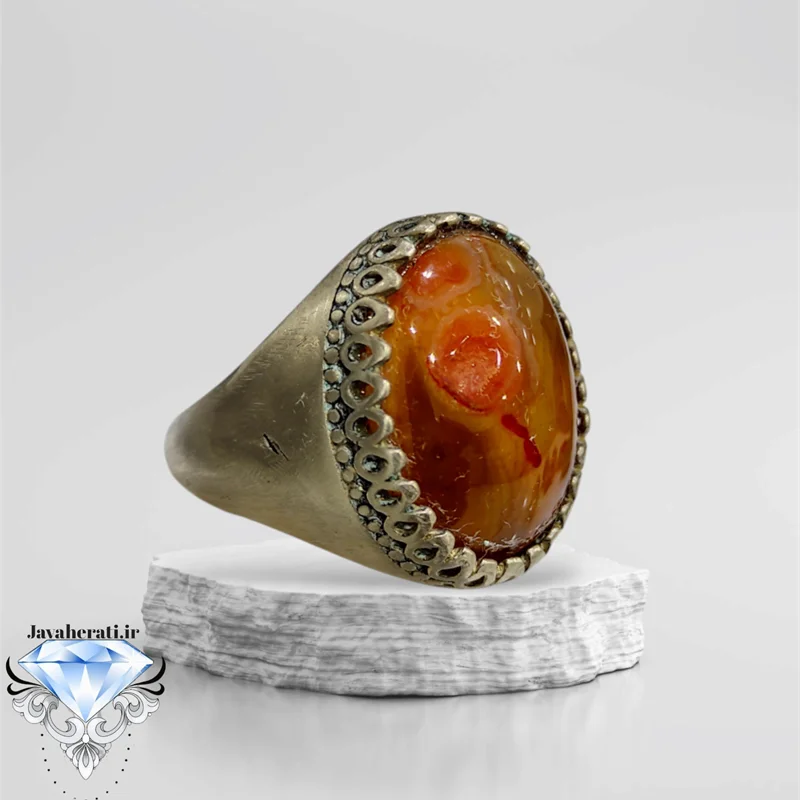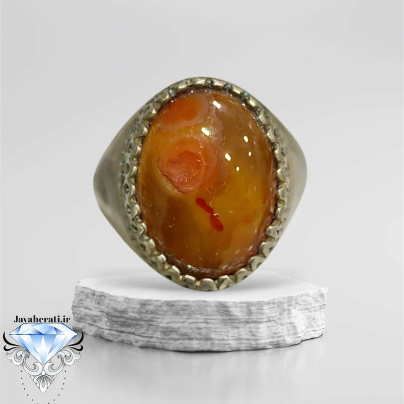 انگشتر عقیق سلیمانی لکه خونی طبیعی