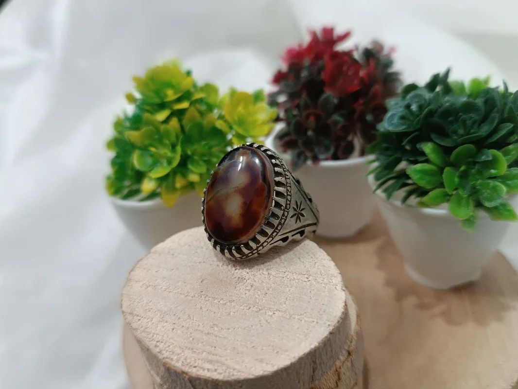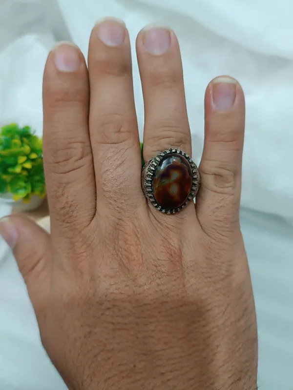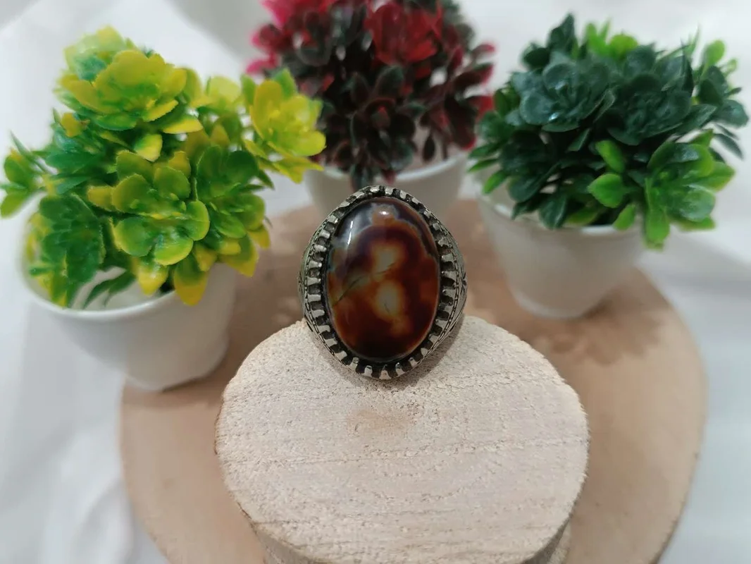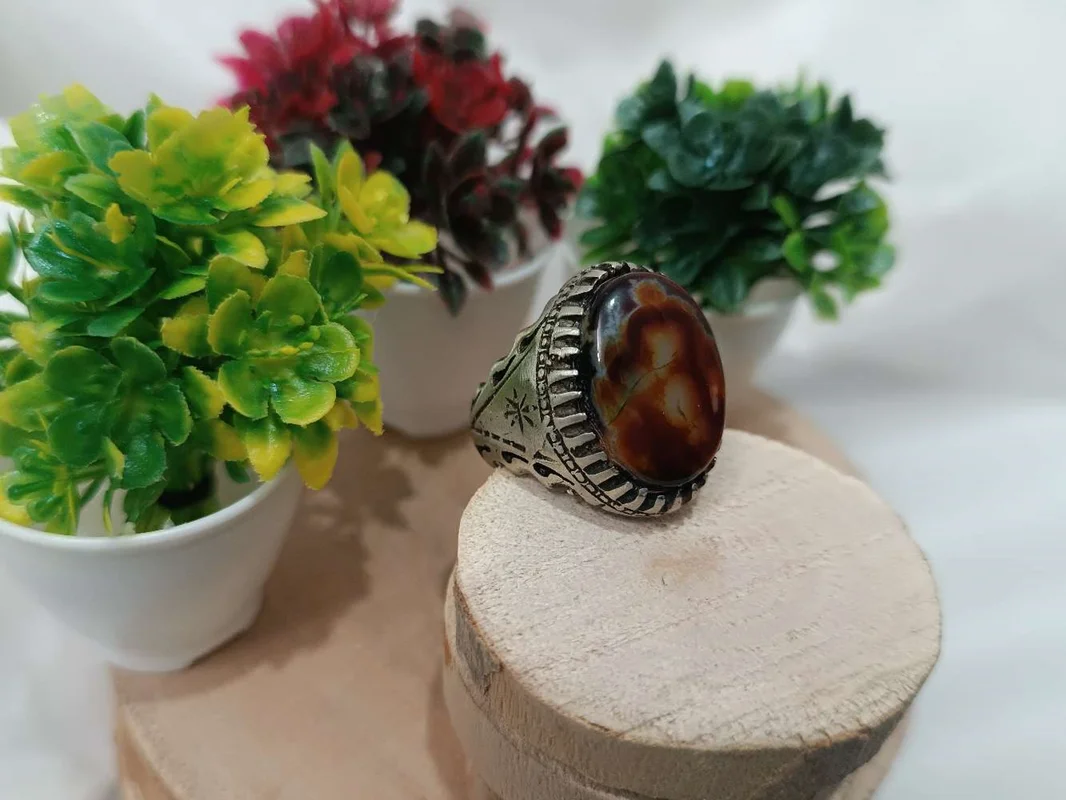 انگشترمردانه عقیق سلیمانی خونی و مصور