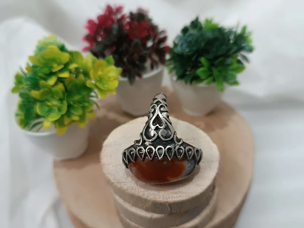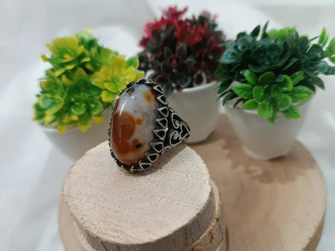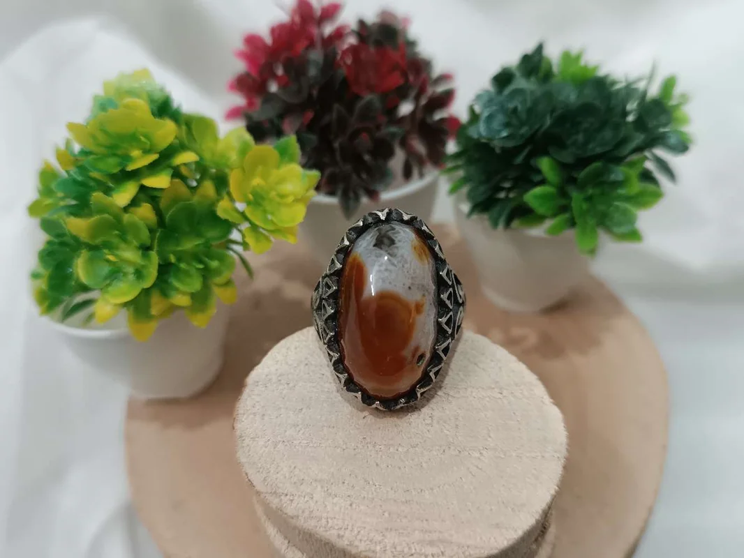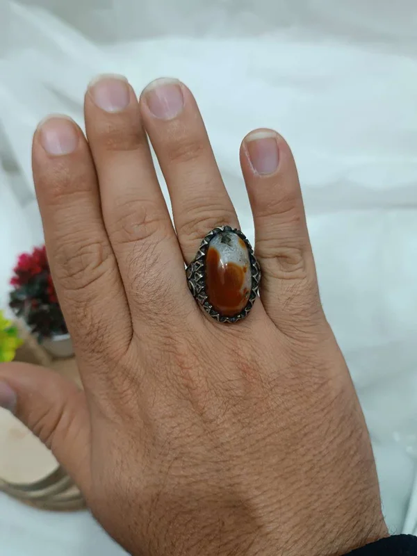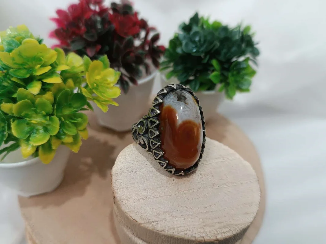 انگشتر عقیق سلیمانی لامه دار خوشرنگ وفاخر