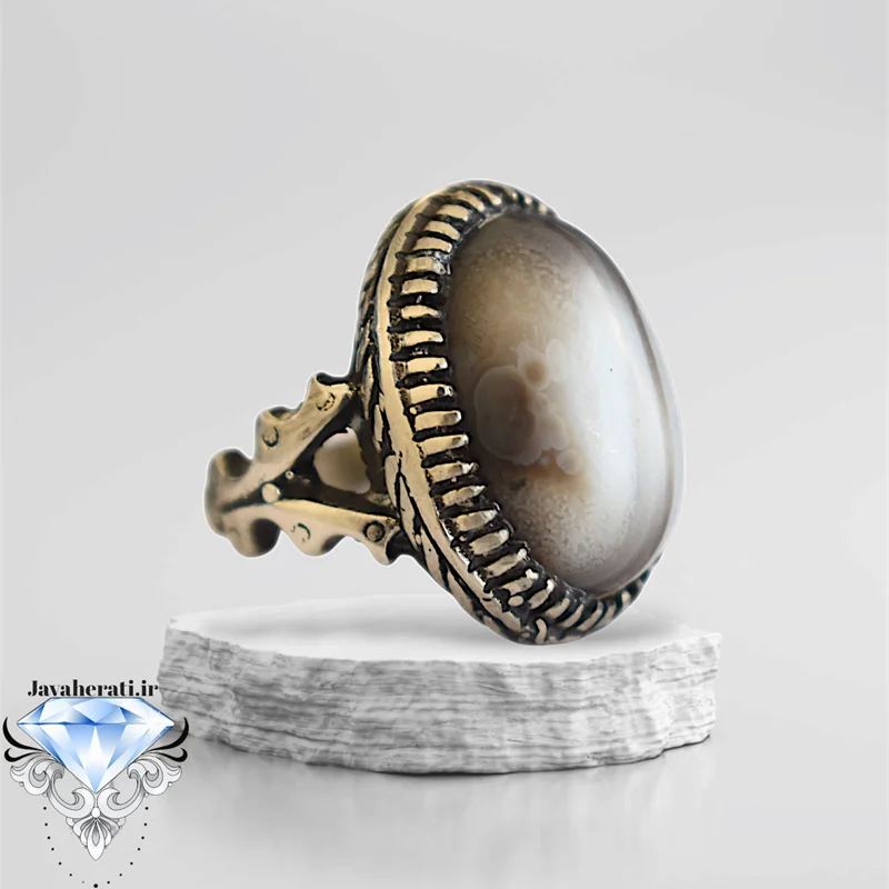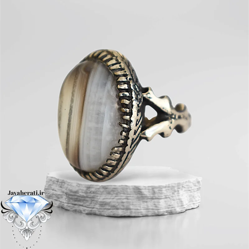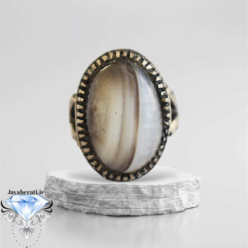 انگشتر عقیق سلیمانی لامه دار معدنی
