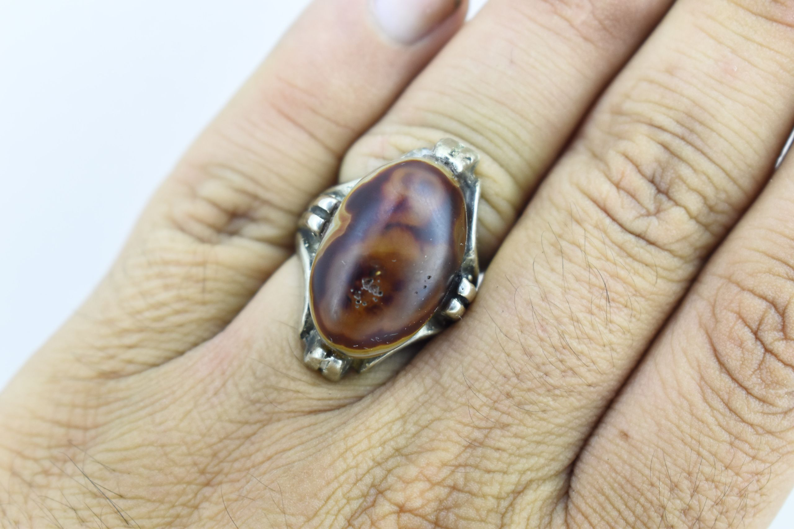انگشترمردانه عقیق سلیمانی مصور زیبا S90