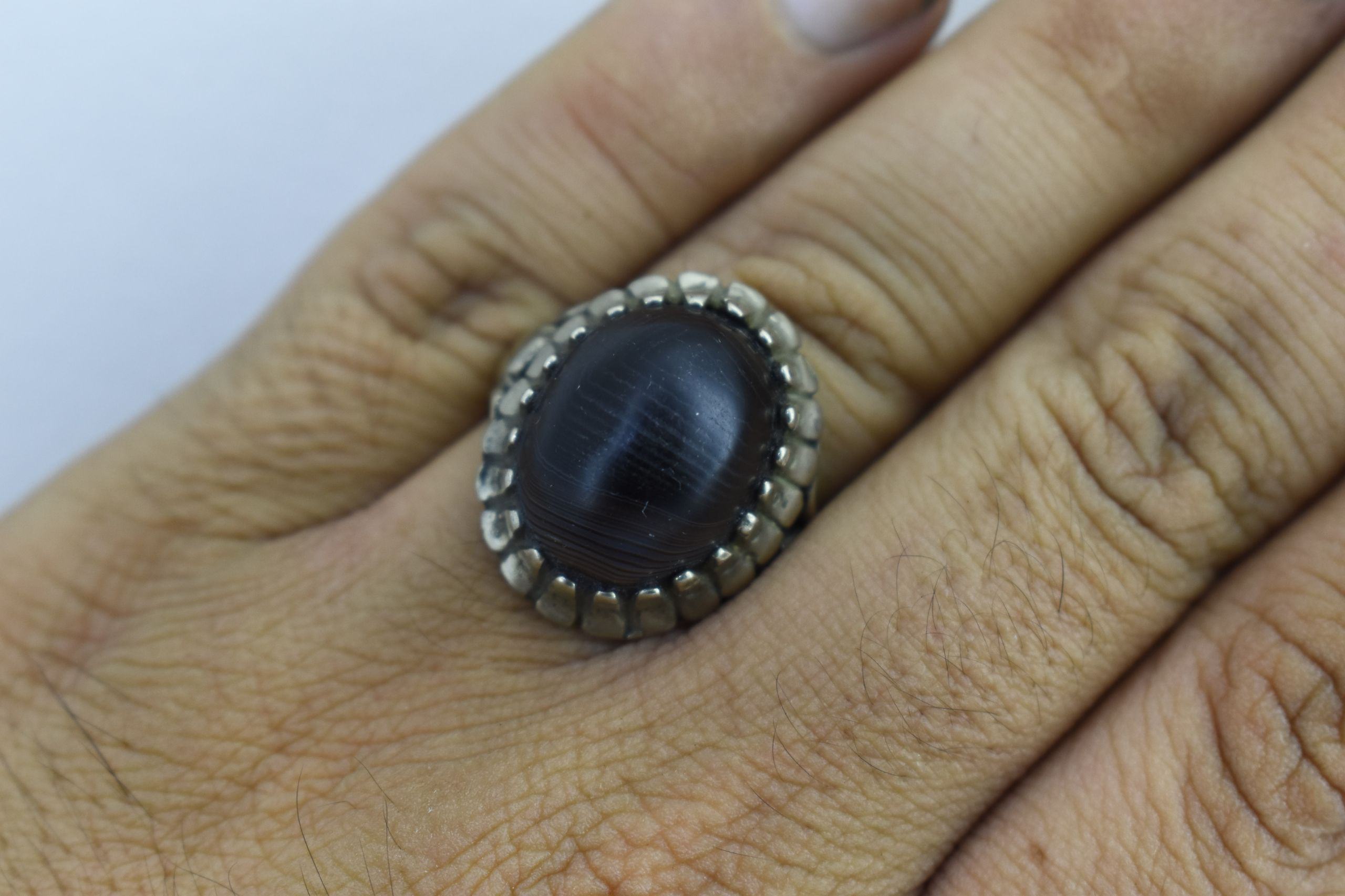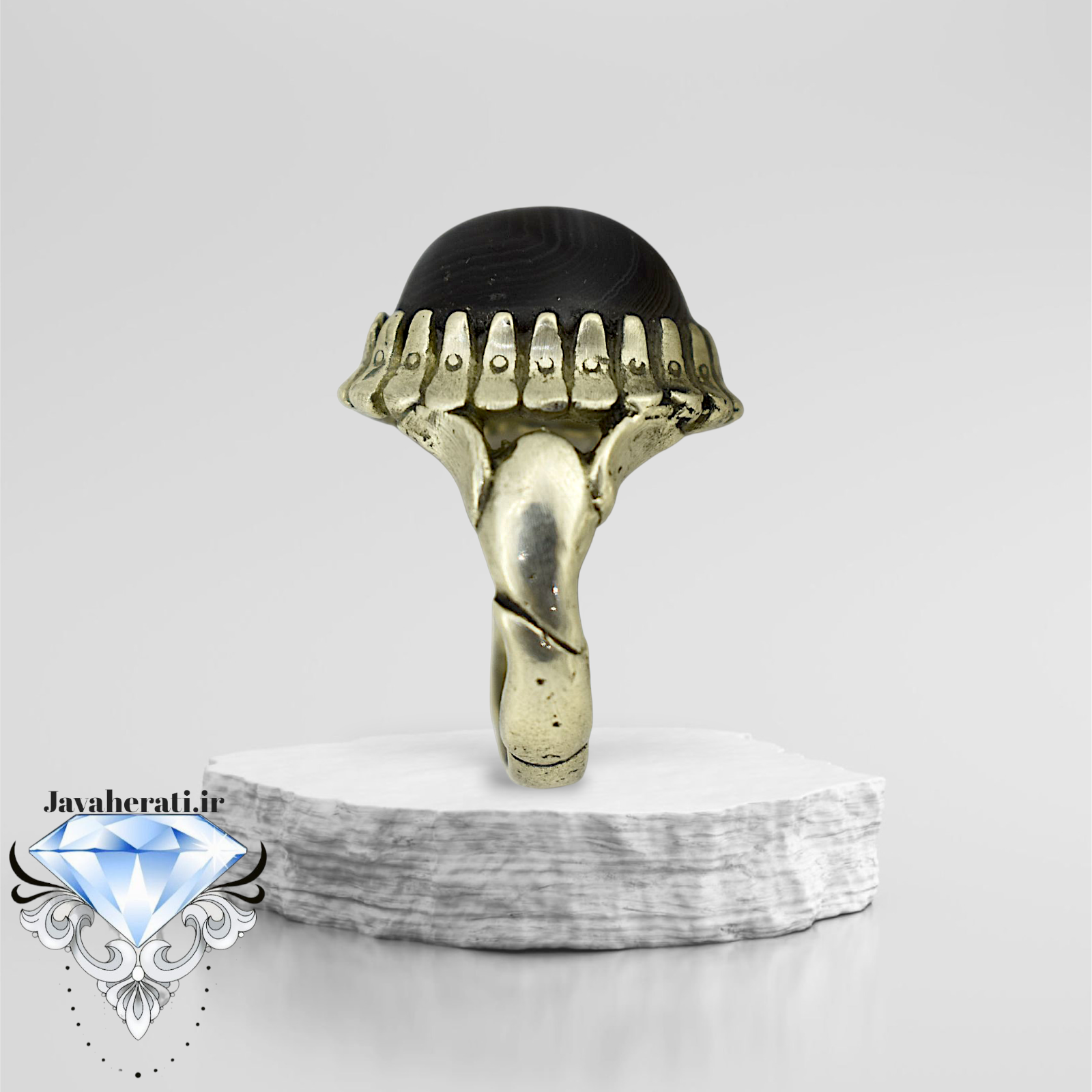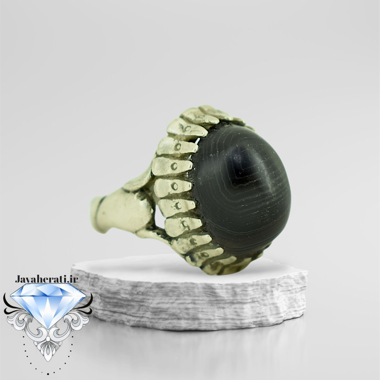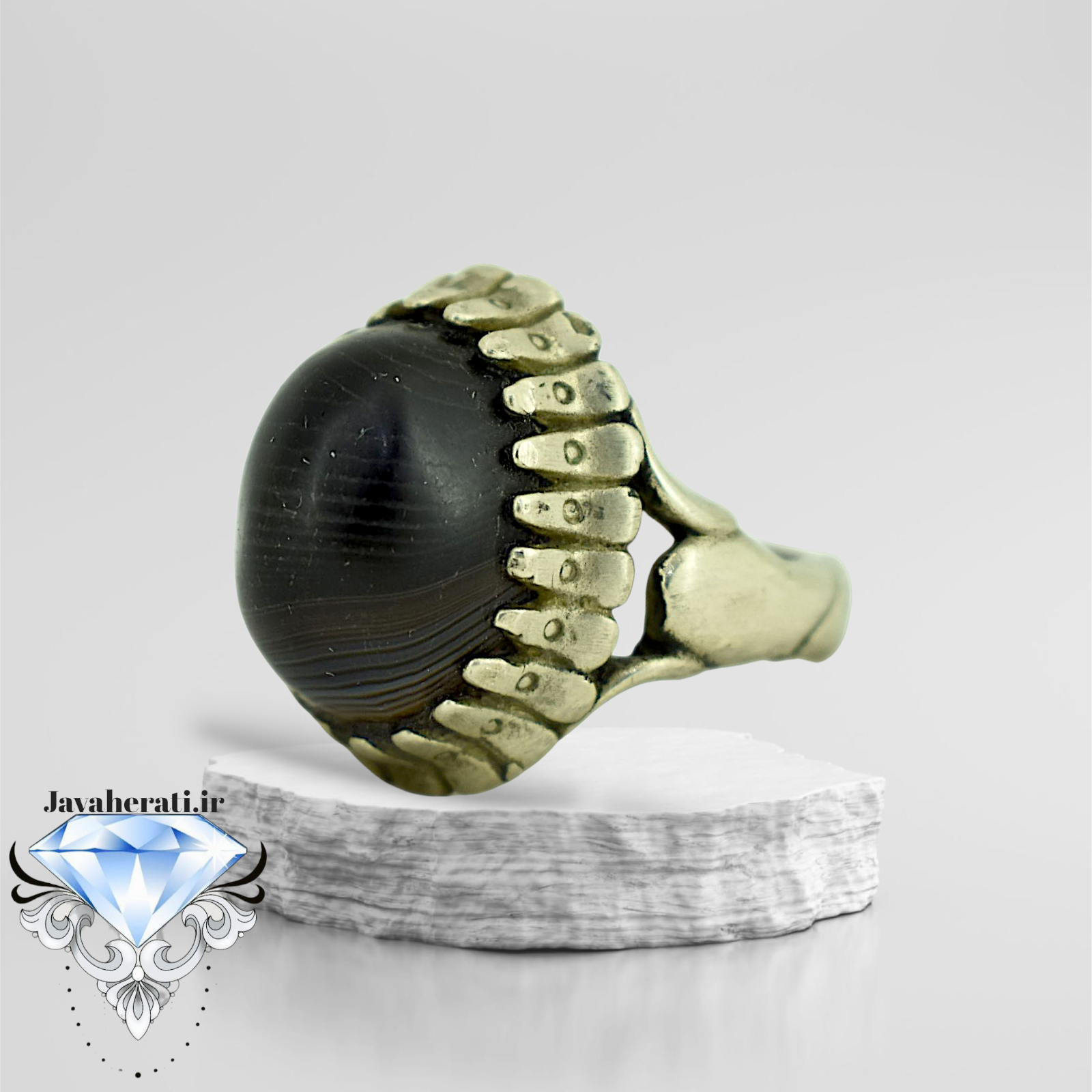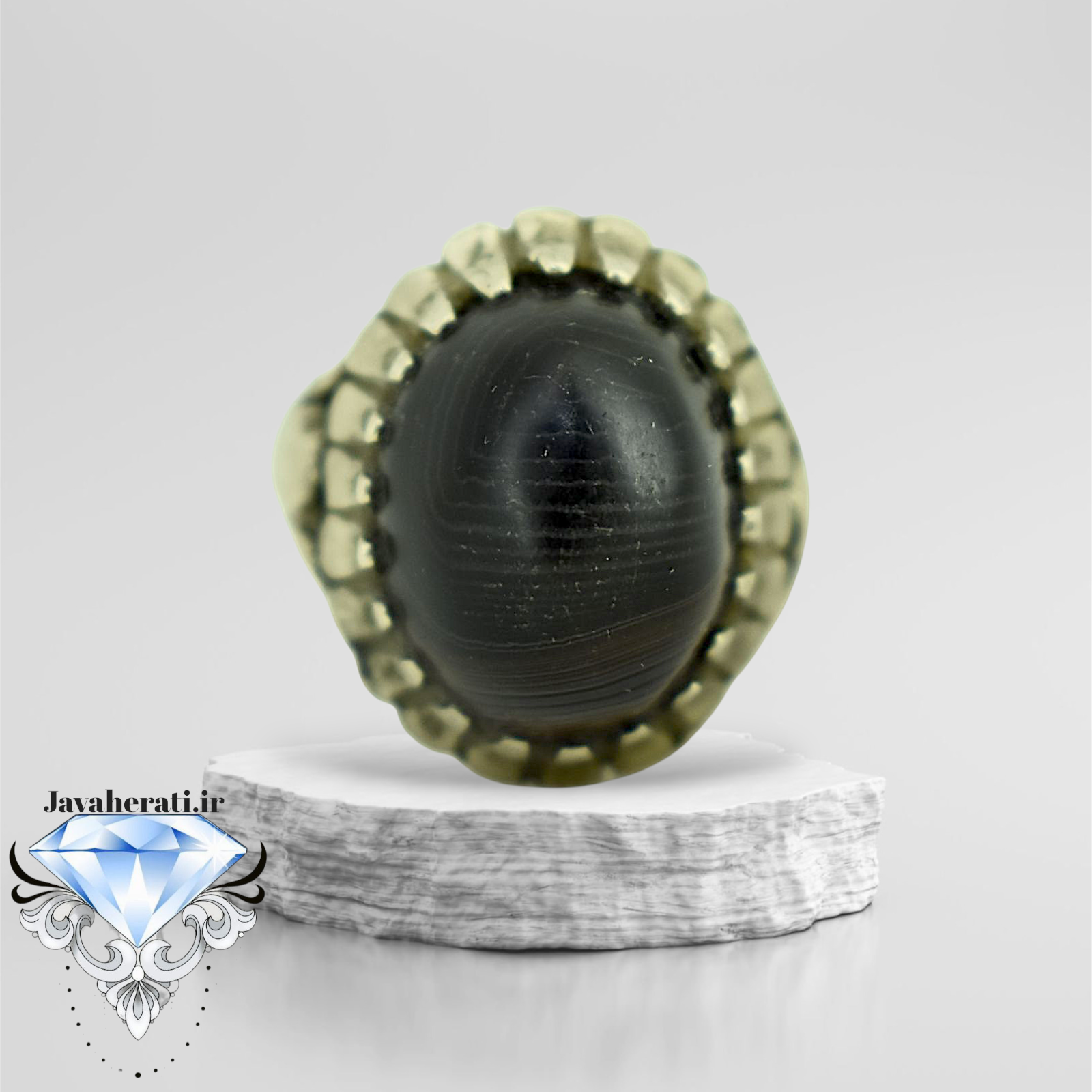 انگشتر عقیق سلیمانی مشکی رگه دار S99
