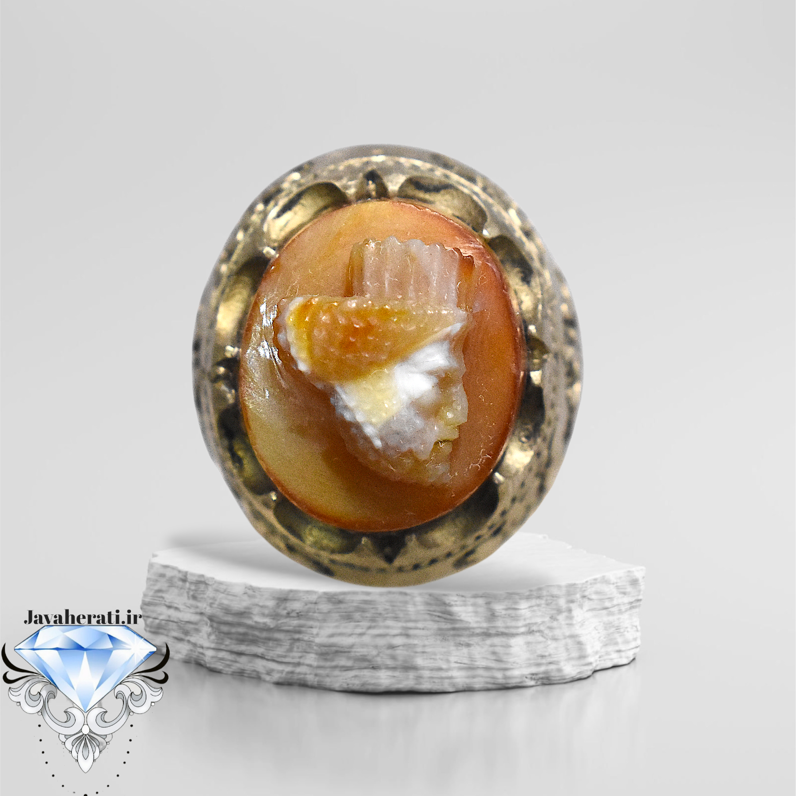 انگشترمردانه عقیق سه پوست کاروینگ دستی کوروش کبیر