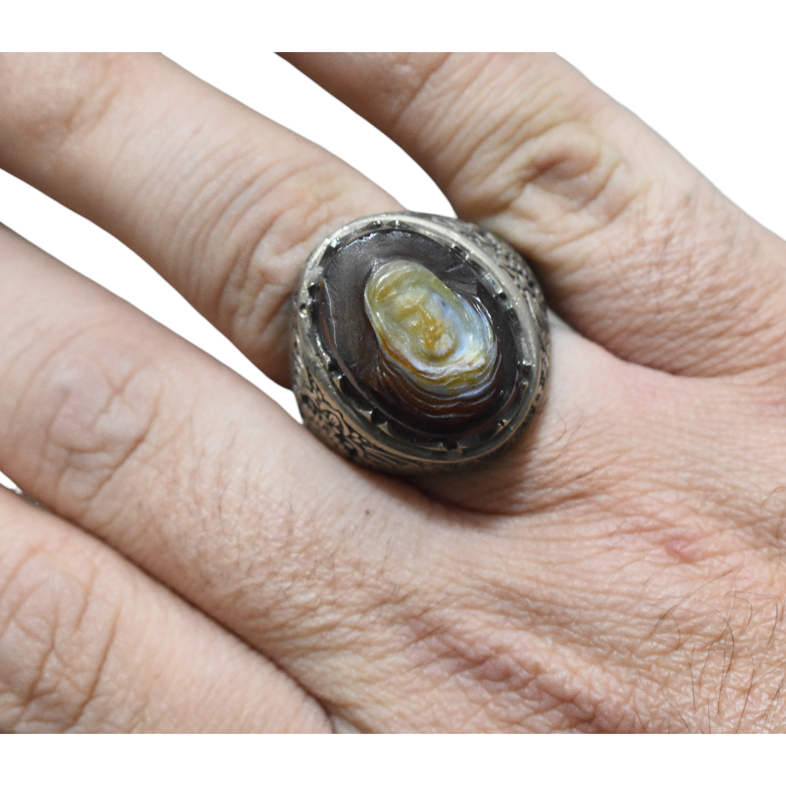 انگشترمردانه عقیق کاروینگ دستی شمایل