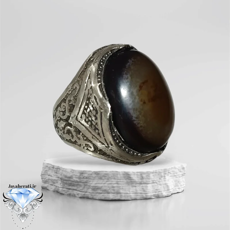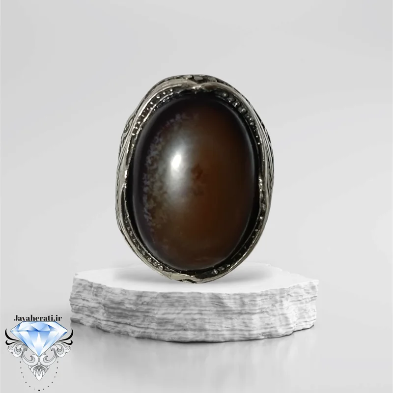 انگشتر عقیق اصل و ارزان با رکاب آلیاژ رنگ ثابت و نگین عقیق سلیمانی سه پوست یخی با طبع شفت العبد بسیارزیبا و ارزشمند