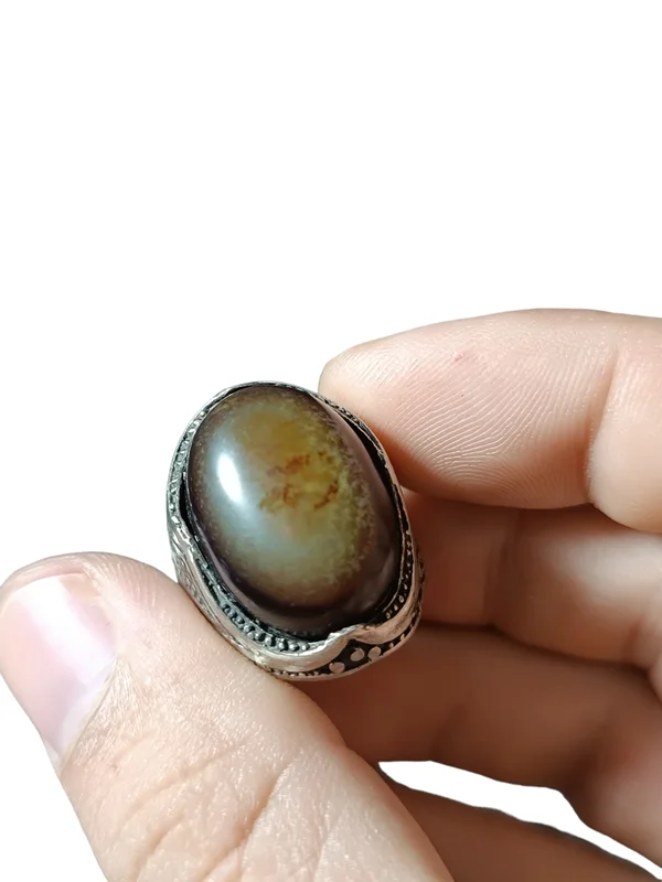 انگشتر عقیق سپوست یخی طبیعی بسیارزیبا