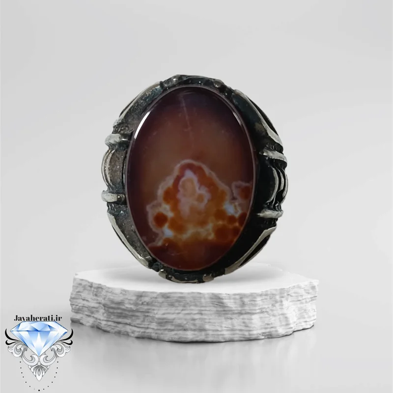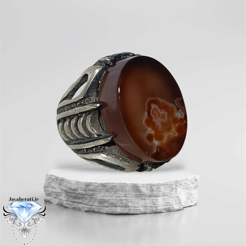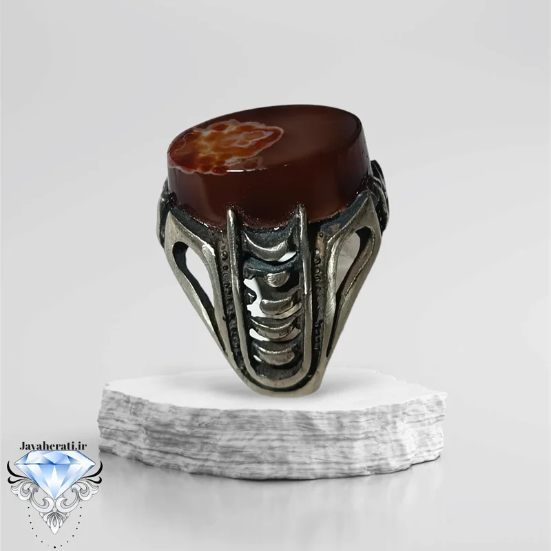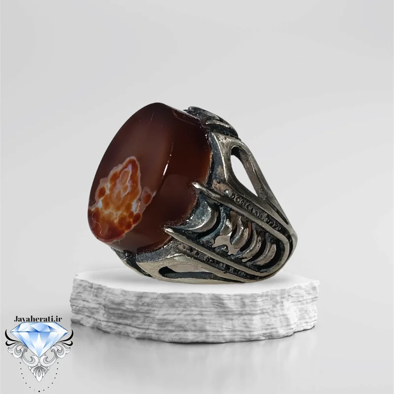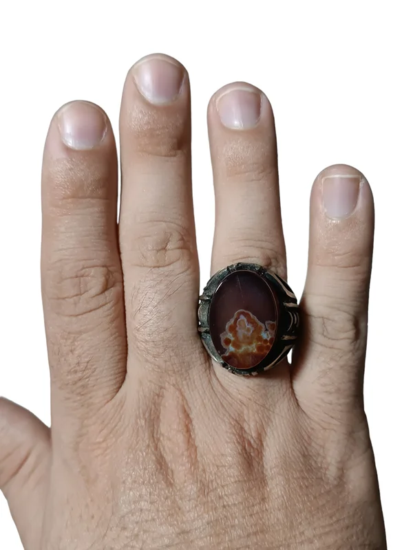 انگشتر مردانه عقیق سرخ طبیعی با رکاب آلیاژ ورشو رنگ ثابت و نگین عقیق سرخ لکه خونی خراسانی بسیارزیبا وارزشمند