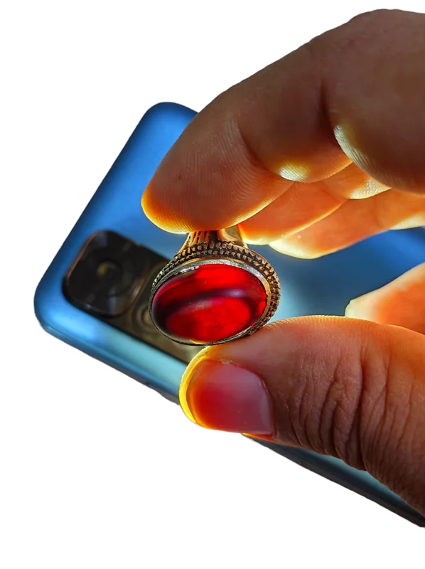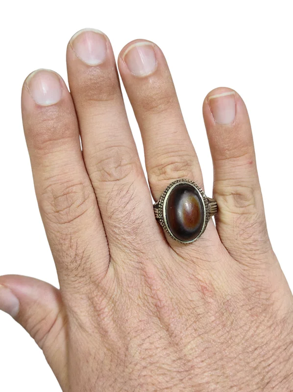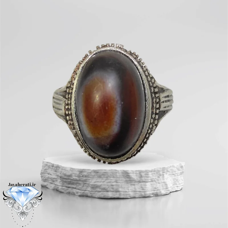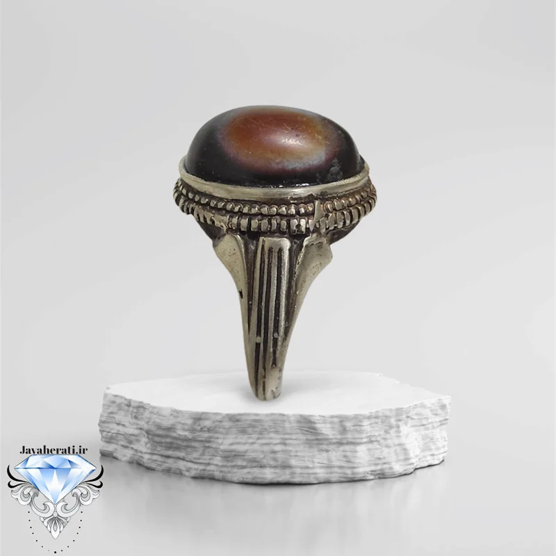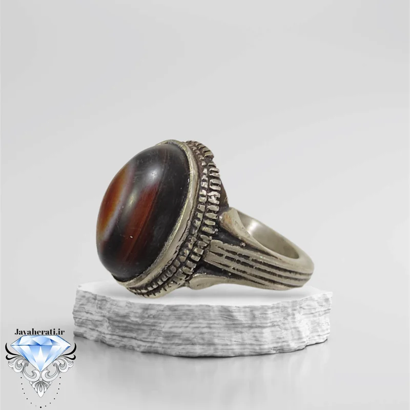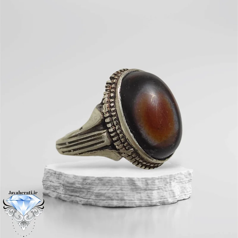 انگشتر عقیق سه پوست دامله تراش بسیارزیبا
