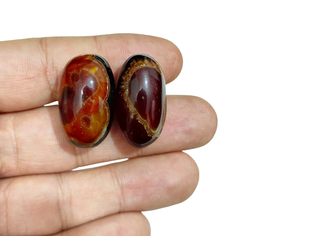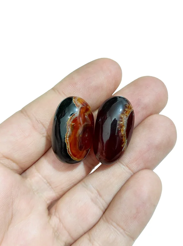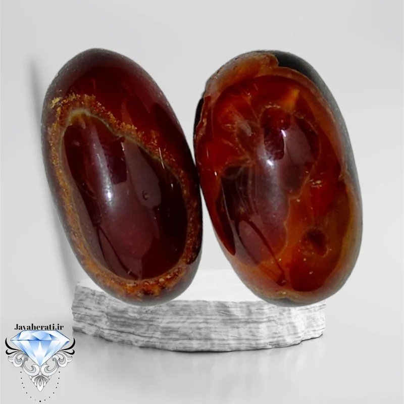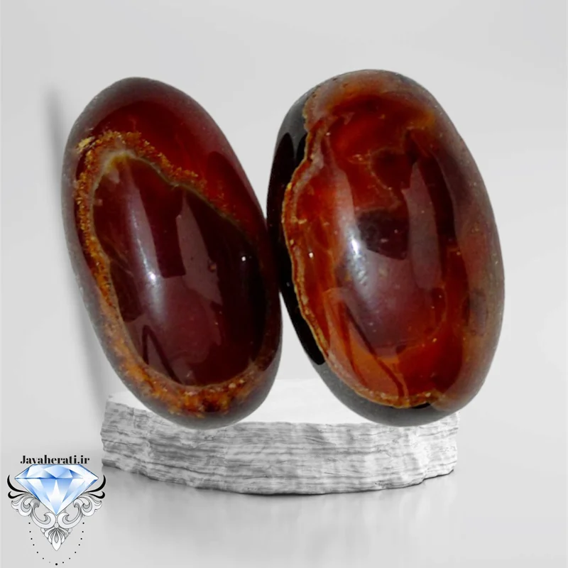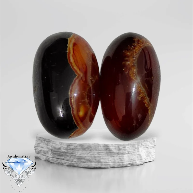 جفت مهره عقیق سلیمانی طبیعی با طبع شفت العبد توسرخ با طرحی بسیار خاص و بینظیر