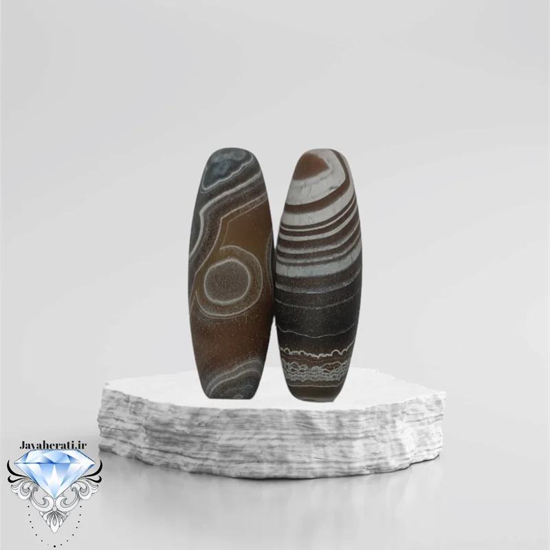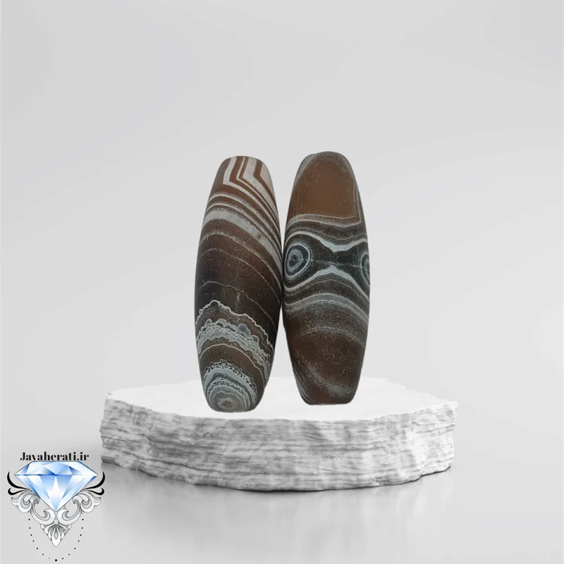 جفت لول عقیق داودی لامه و پاتین دار و معدنی معروف به مهره برد ، فوق العاده زیبا وارزشمند(ضمانت اصالت)
