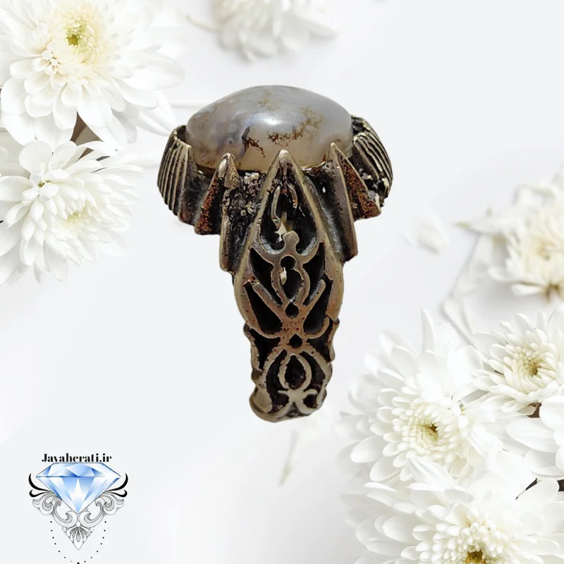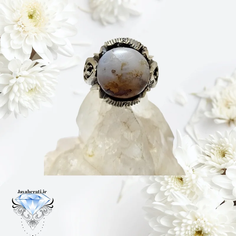 انگشترعقیق شجرمعدنی قائن،زیباوارزشمند(ضمانت اصالت)رکاب زیباوجوندار -سایز63
