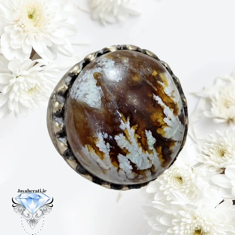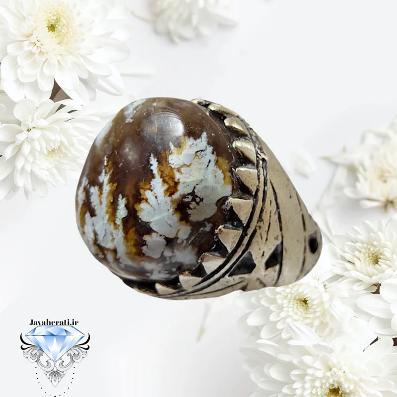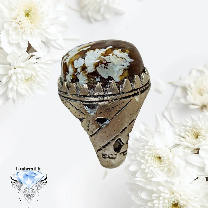 انگشترعقیق شجربوته ای خرمایی معدنی زیباوارزشمند(ضمانت اصالت)رکاب زیباوجوندار -سایز62