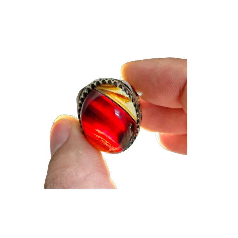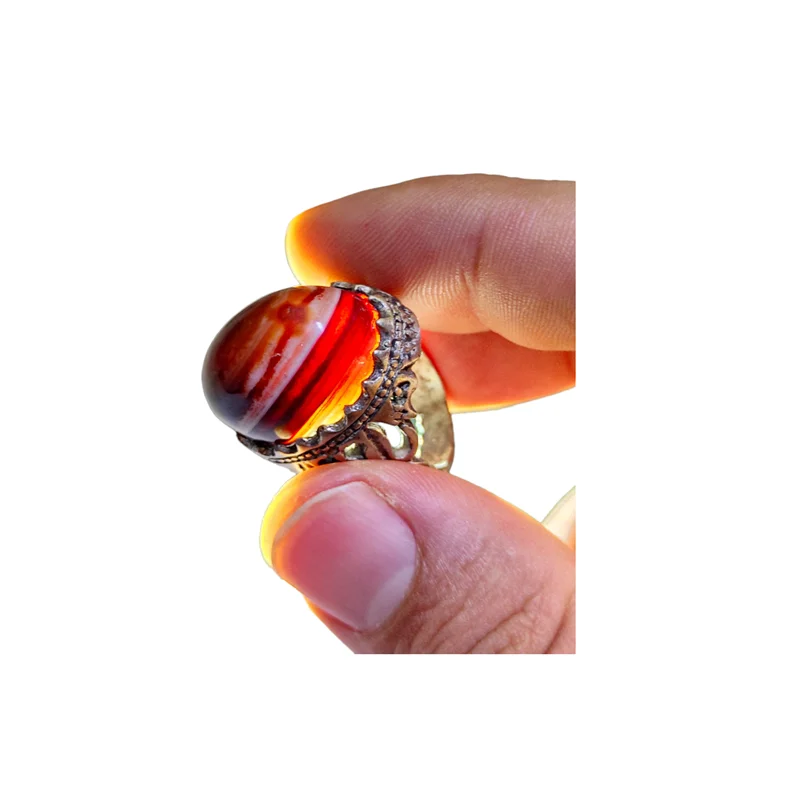 انگشتر عقیق سلیمانی کهکشانی خوشرنگ وبینظیر(بضمانت اصل)-رکاب زیباوهنری -سایز62،63