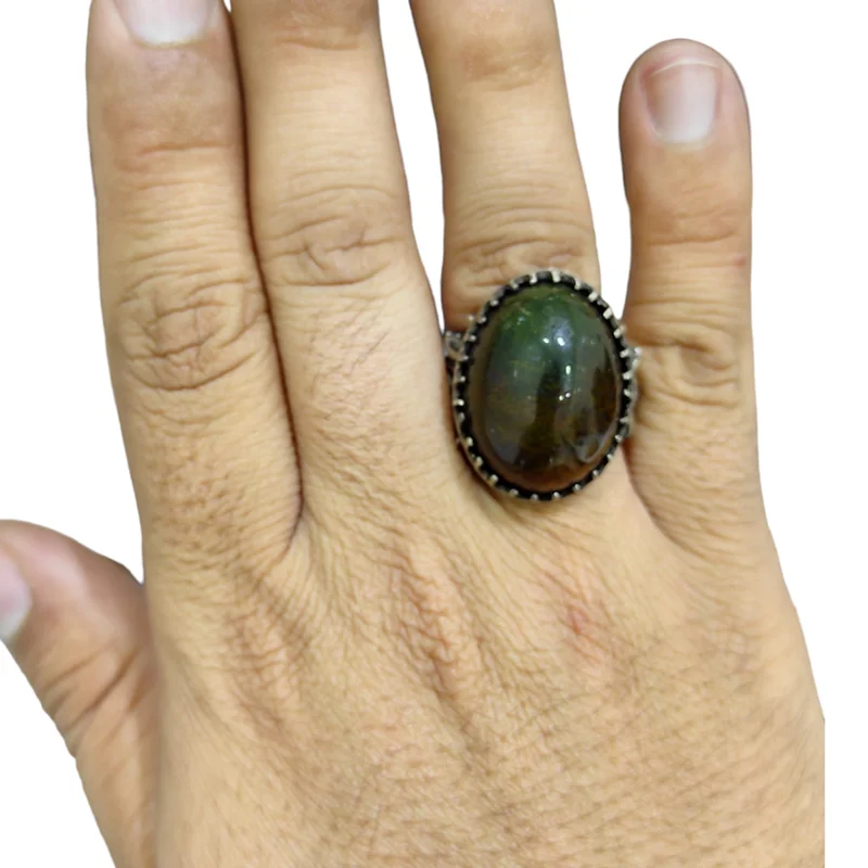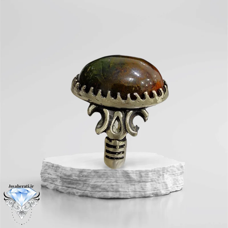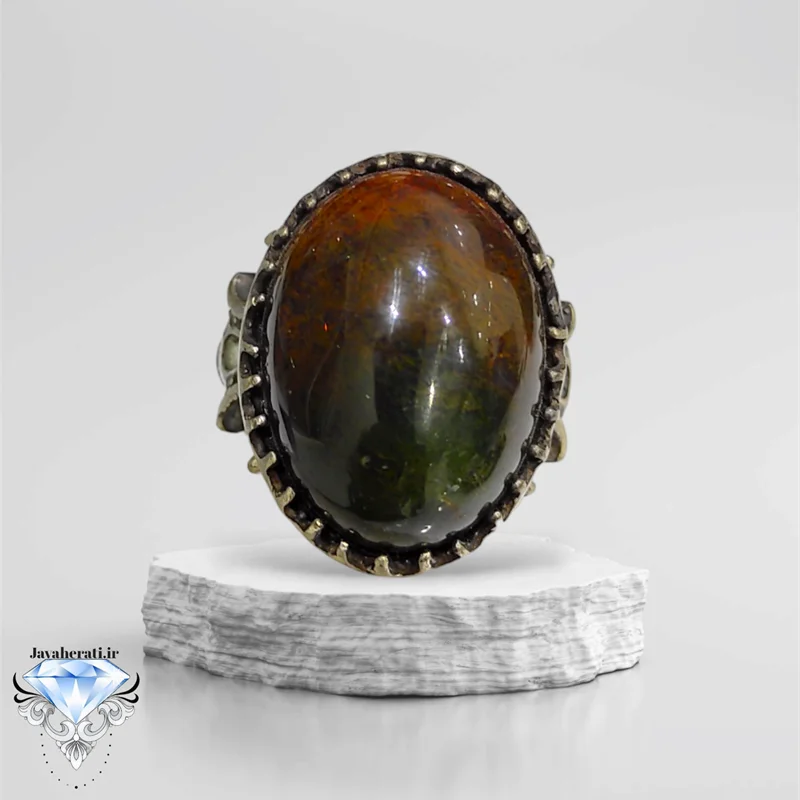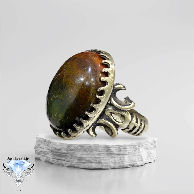 انگشتر عقیق شجرمنظره ای معدنی دو رنگ