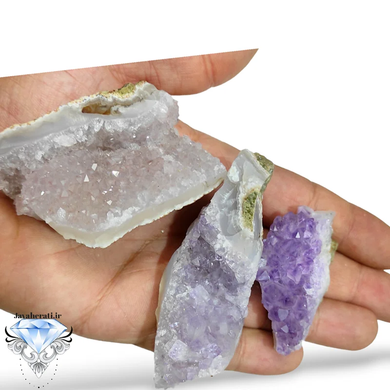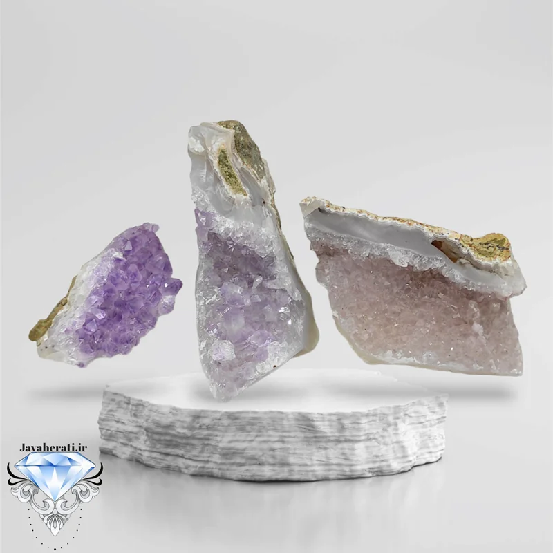 پک 3عددی سنگ آمیتیست پررنگ و بلوری کاملا معدنی با ریزبلورهای درخشان و بسیارچشم نواز