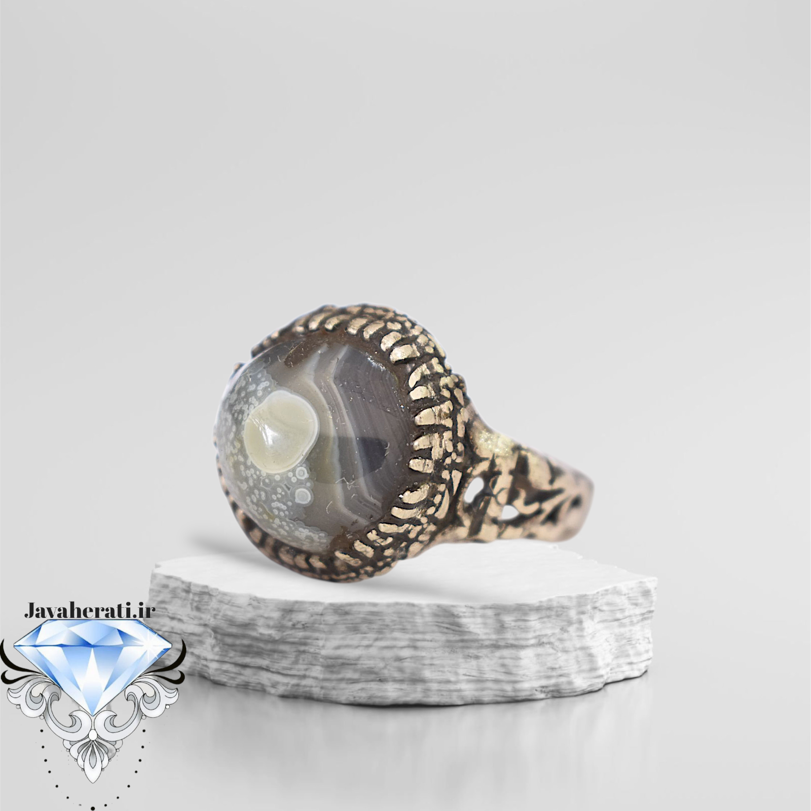 انگشتر عقیق باباقوری تک چشم معدنی