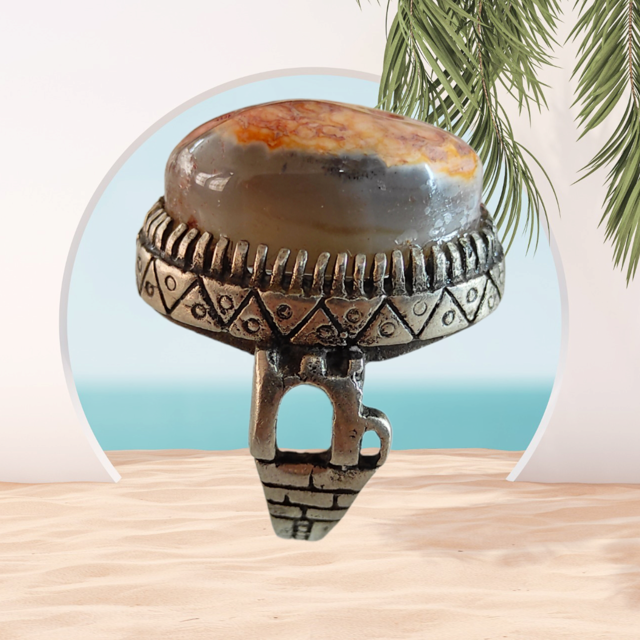 نگین عقیق باباقوری پرگاری بسیارزیبا S118
