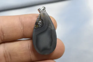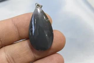 آویز عقیق کبود فردوس کاملاً طبیعی با تضمین اصالت، اندازه تقریبی 7*18*34 میلیمتر و وزن 6.9 گرم