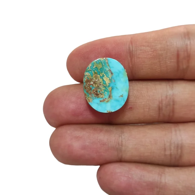 نگین فیروزه اصیل نیشابور کاملاً طبیعی با ضمانت اصالت، اندازه 10، 17 و 21 میلیمتر و وزن 4.4 گرم. این نگین زیبا و باارزش، انتخابی بینظیر برای علاقهمندان به جواهرات اصیل ایرانی است.