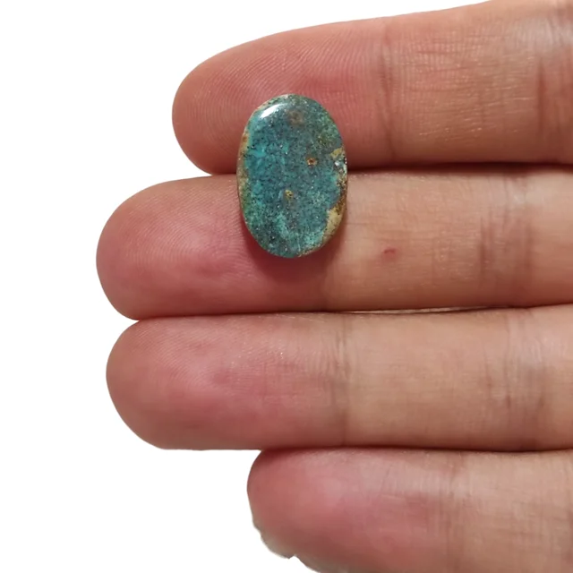 نگین فیروزه اصیل نیشابور، کاملاً طبیعی با ضمانت اصالت، ابعاد 7*13*19 میلیمتر و وزن 2.4 گرم، مناسب برای استفاده در جواهرات خاص و ارزشمند، هدیهای بینظیر برای علاقهمندان به سنگهای قیمتی ناب و اصیل ایرانی.