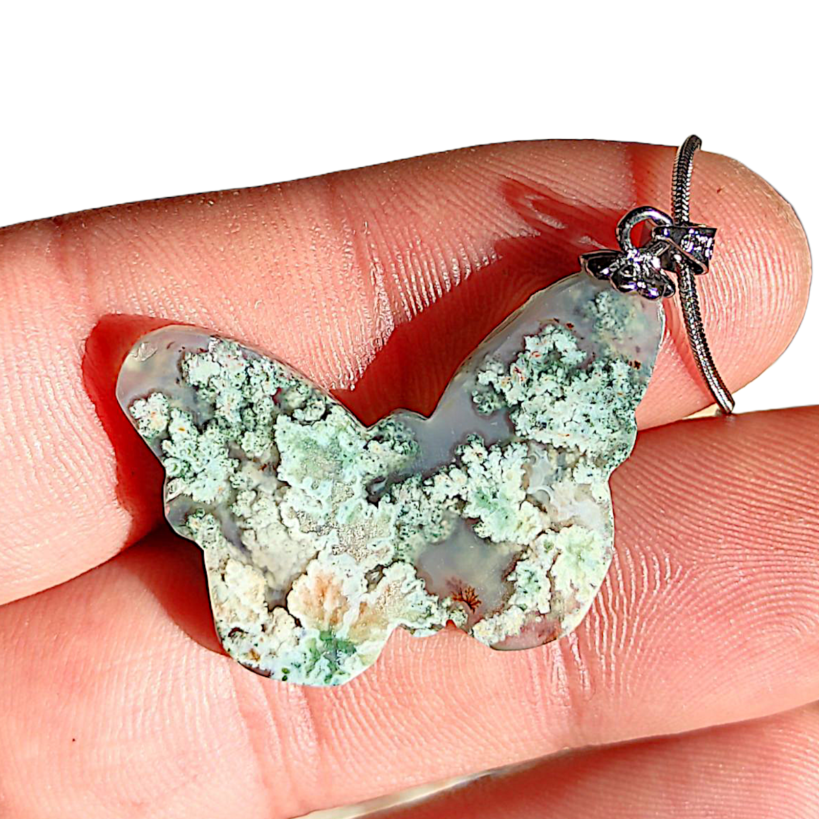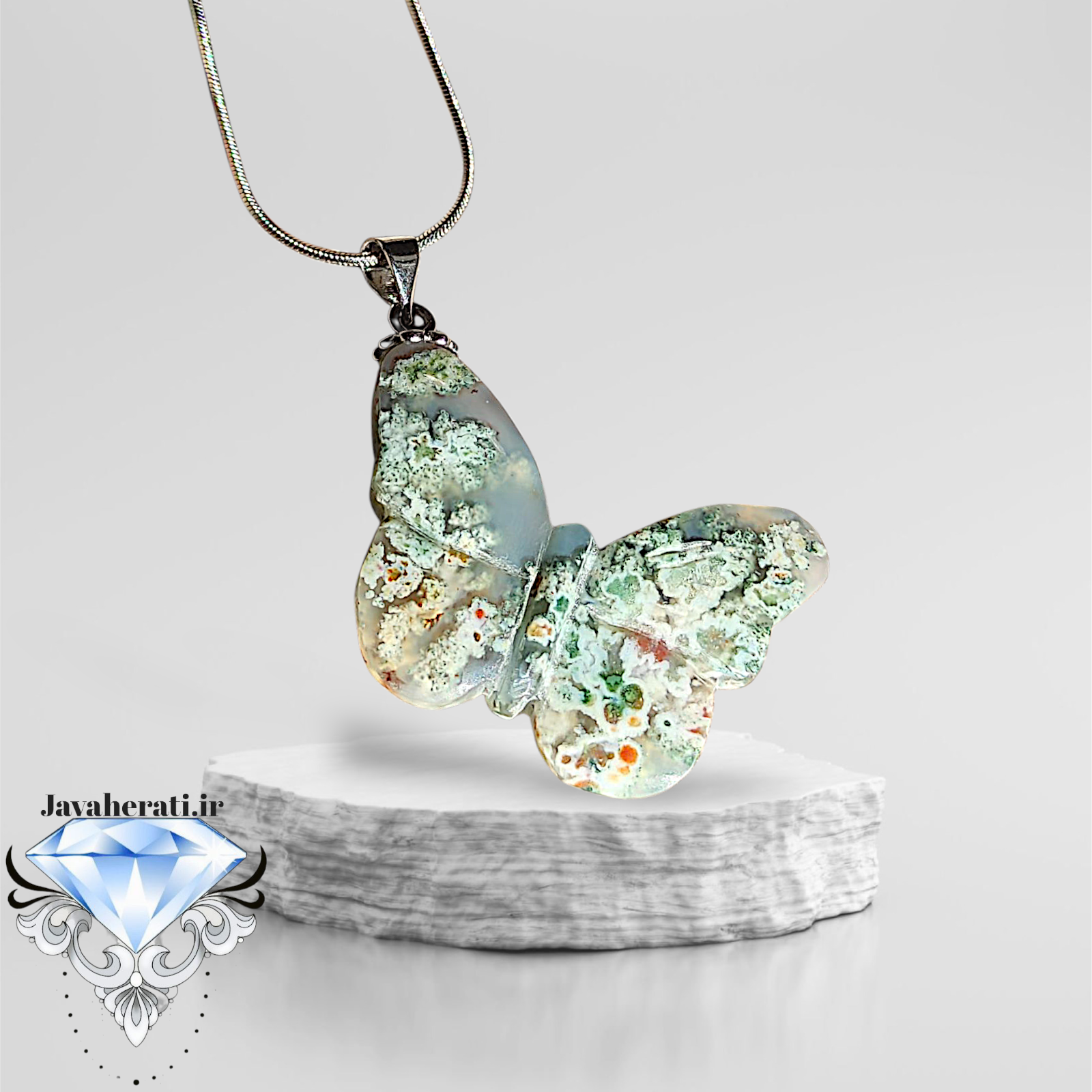 گردنبند عقیق شجر هفت رنگ فردوس کاروینگ پروانه