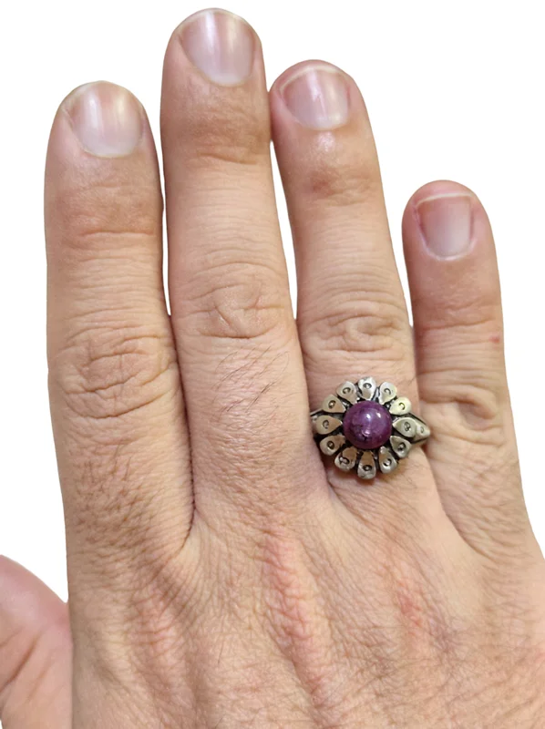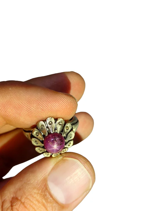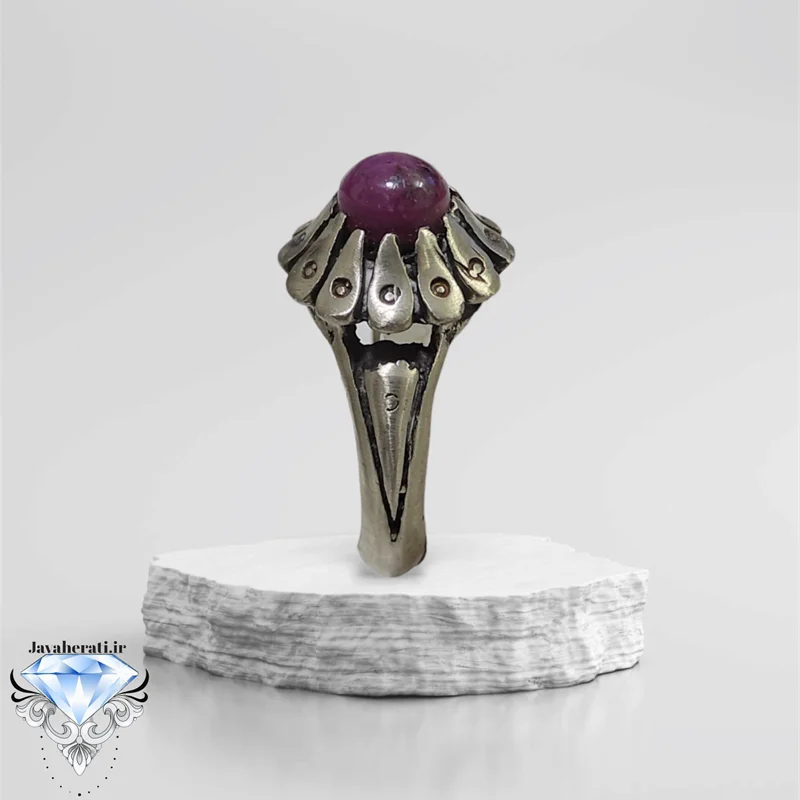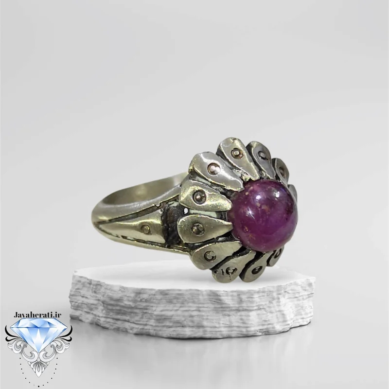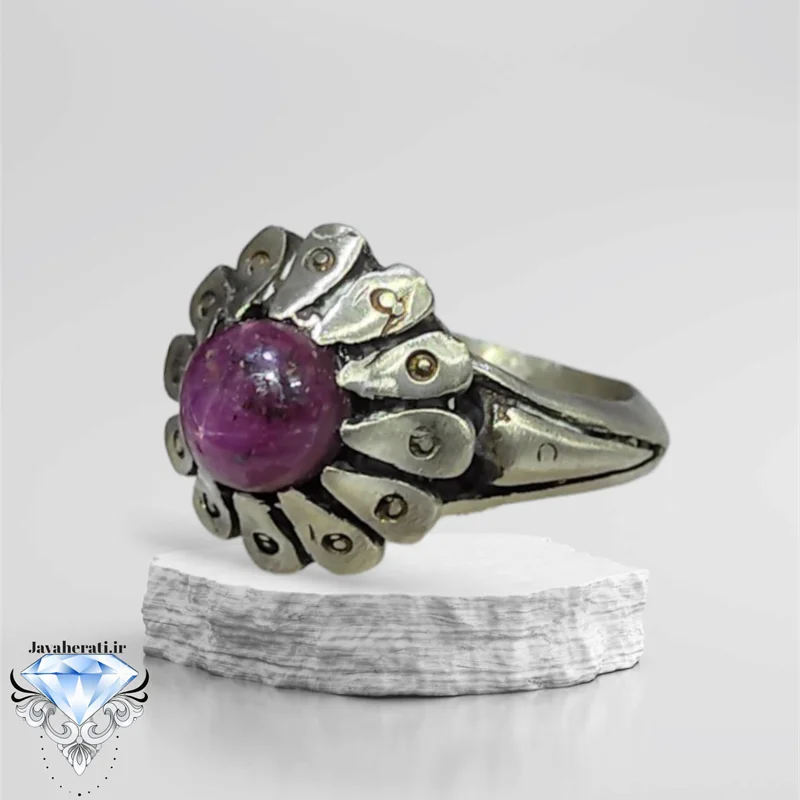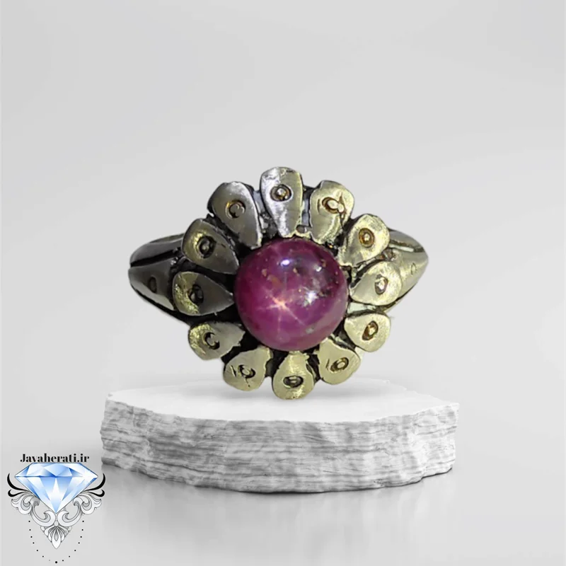 انگشتر یاقوت گارنت استار شش پر معدنی بسیارزیبا و ارزشمند(بضمانت اصل)-رکاب زیبا وهنری-سایز62