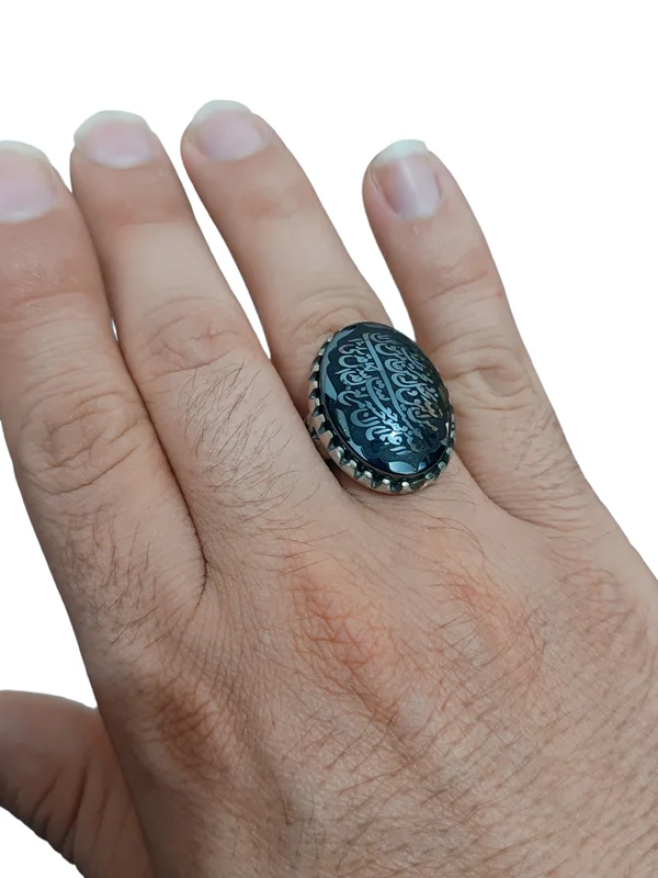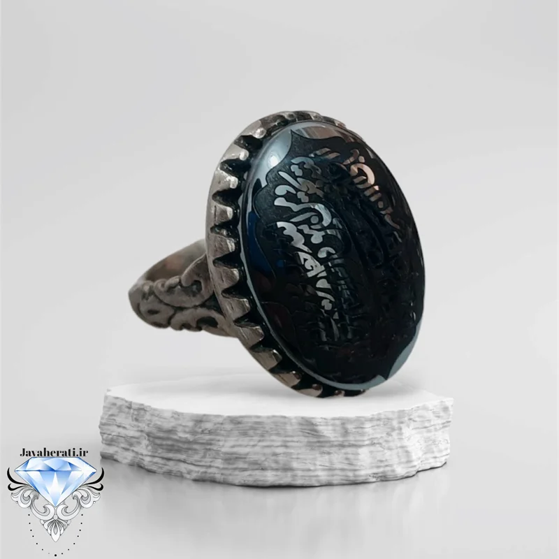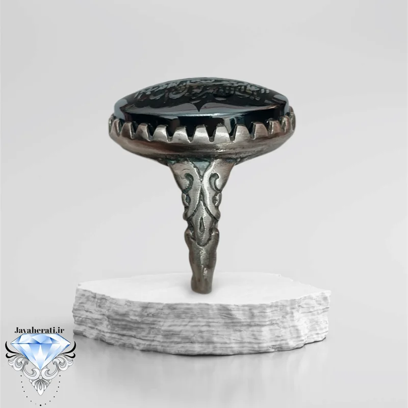 انگشتر حدید صینی طبیعی حکاکی بینظیر آیه3سوره طلاق مناسب رزق وروزی