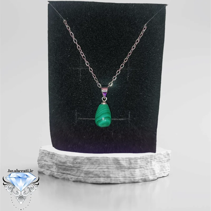 مدال مالاکیت اصیل وبسیار زیبا (ضمانت اصالت) وزن 7قیراط اندازه 10میلیمتر زنجیراستیل رنگ ثابت 45سانتیمتری(کوتاه)