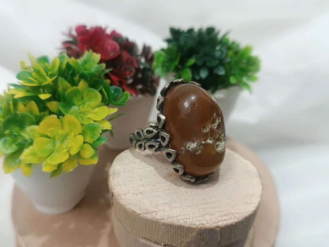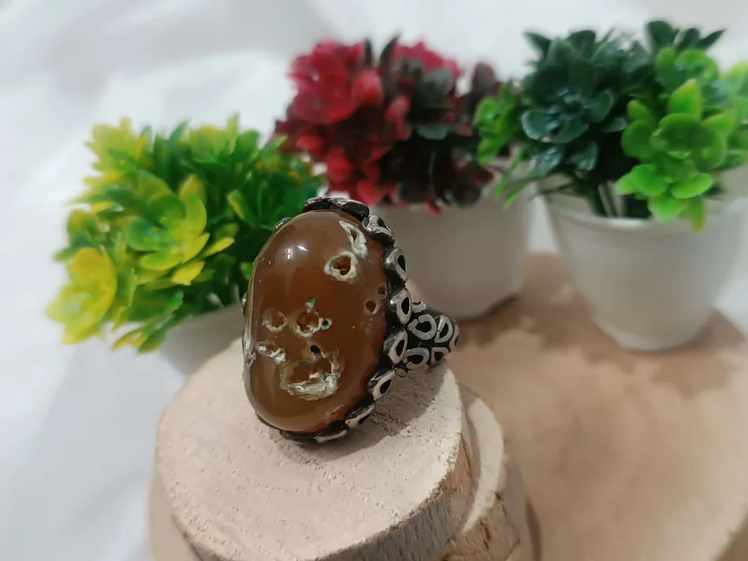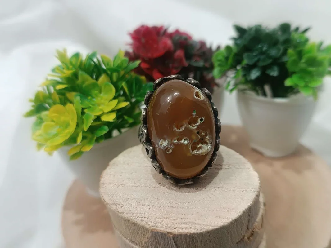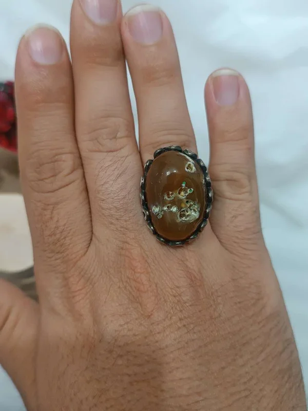 انگشتر مردانه عقیق زرد معدنی روتایلدار و موریانه خور (ضمانت اصالت)
