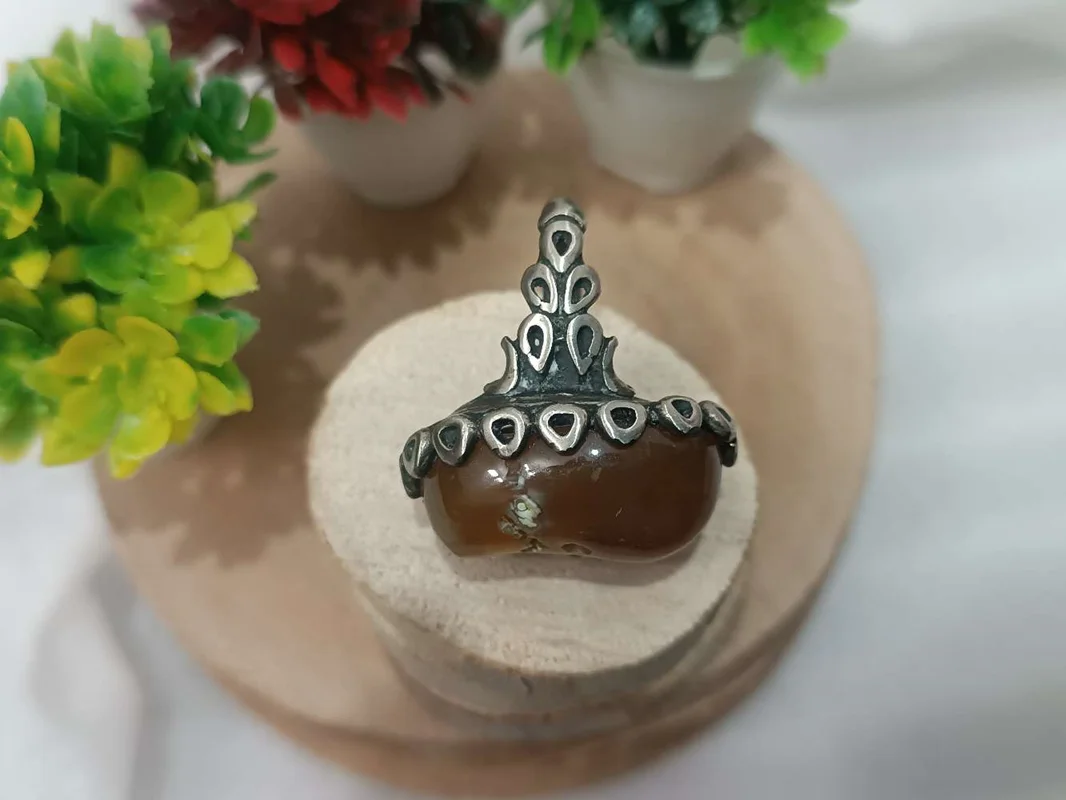 انگشتر مردانه عقیق سلیمانی معدنی فعال باطبع فوق العاده ارزشمند (ضمانت اصالت) رکاب زیباوهنری -سایز64