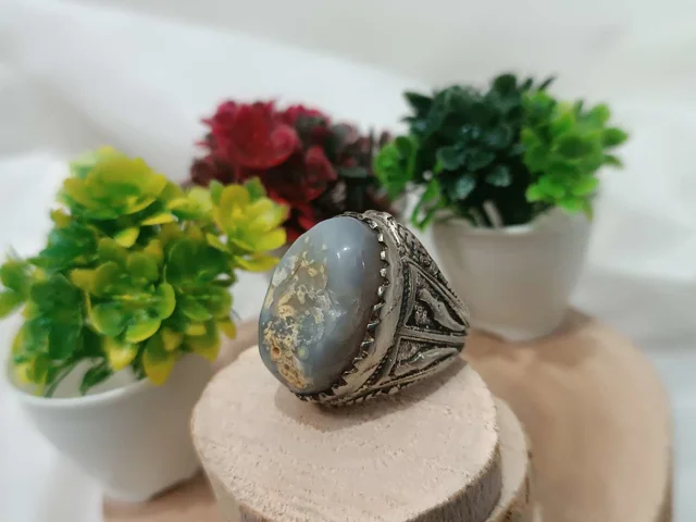 انگشتر عقیق کبود سلیمانی مصور فعال و بینظیر