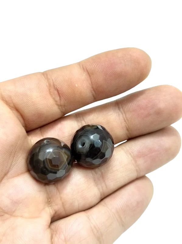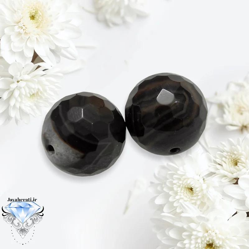 جفت مهره عقیق سلیمانی لامه طبیعی تراش کندویی