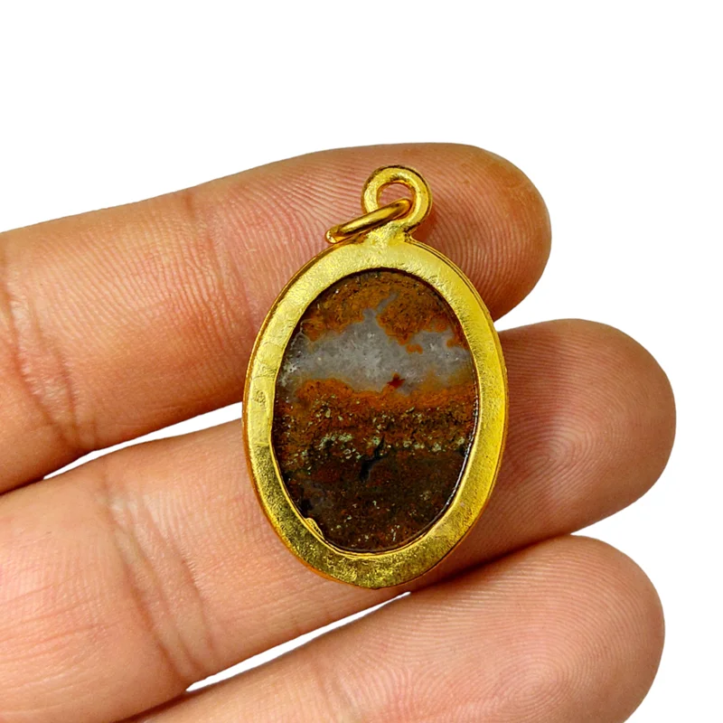 آویز عقیق شجرپاییزی معدنی وارزشمند(تضمین اصالت)سطح نگین ژئود دارداندازه 18*25میلیمتر
