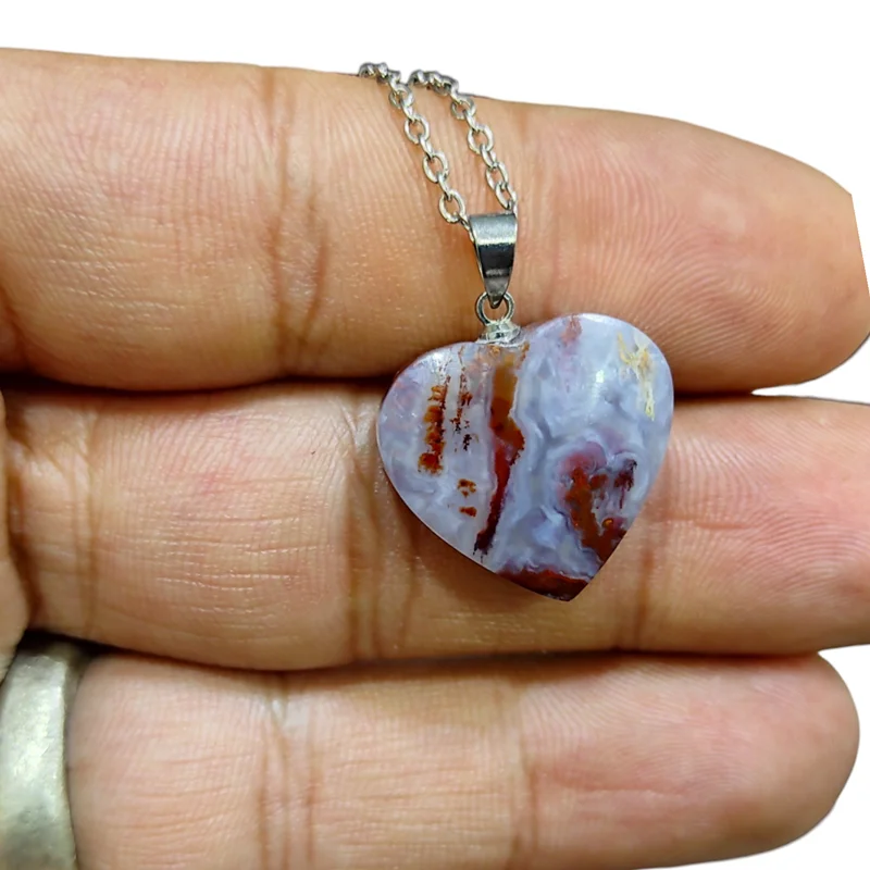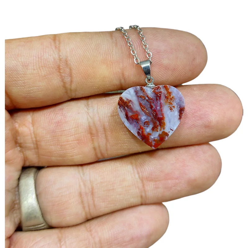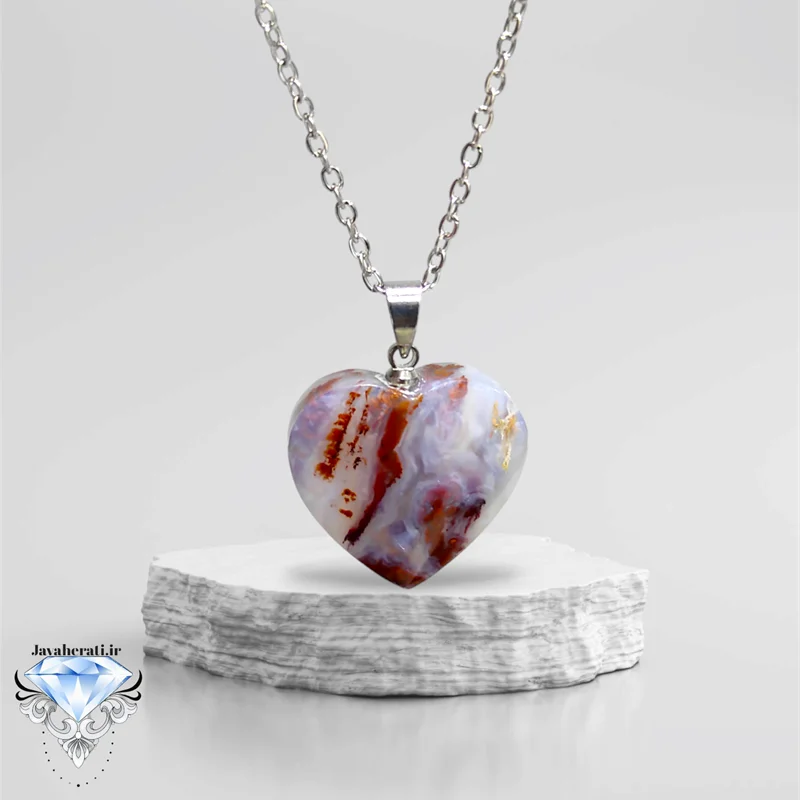 گردنبند عقیق شجر سه قلعه - کاملا طبیعی بدون هیچگونه بهسازی- تراش قلب