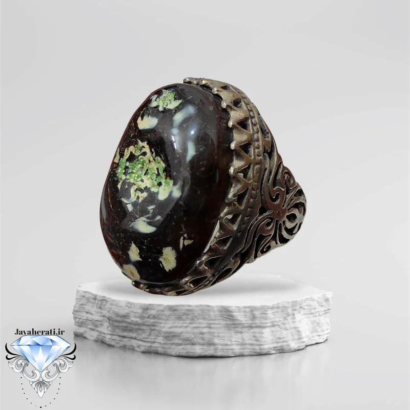 انگشتر جزع سلیمانی مصور بسیار زیباوارزشمند(بضمانت اصل)-رکاب زیبا وبینقص-سایز64