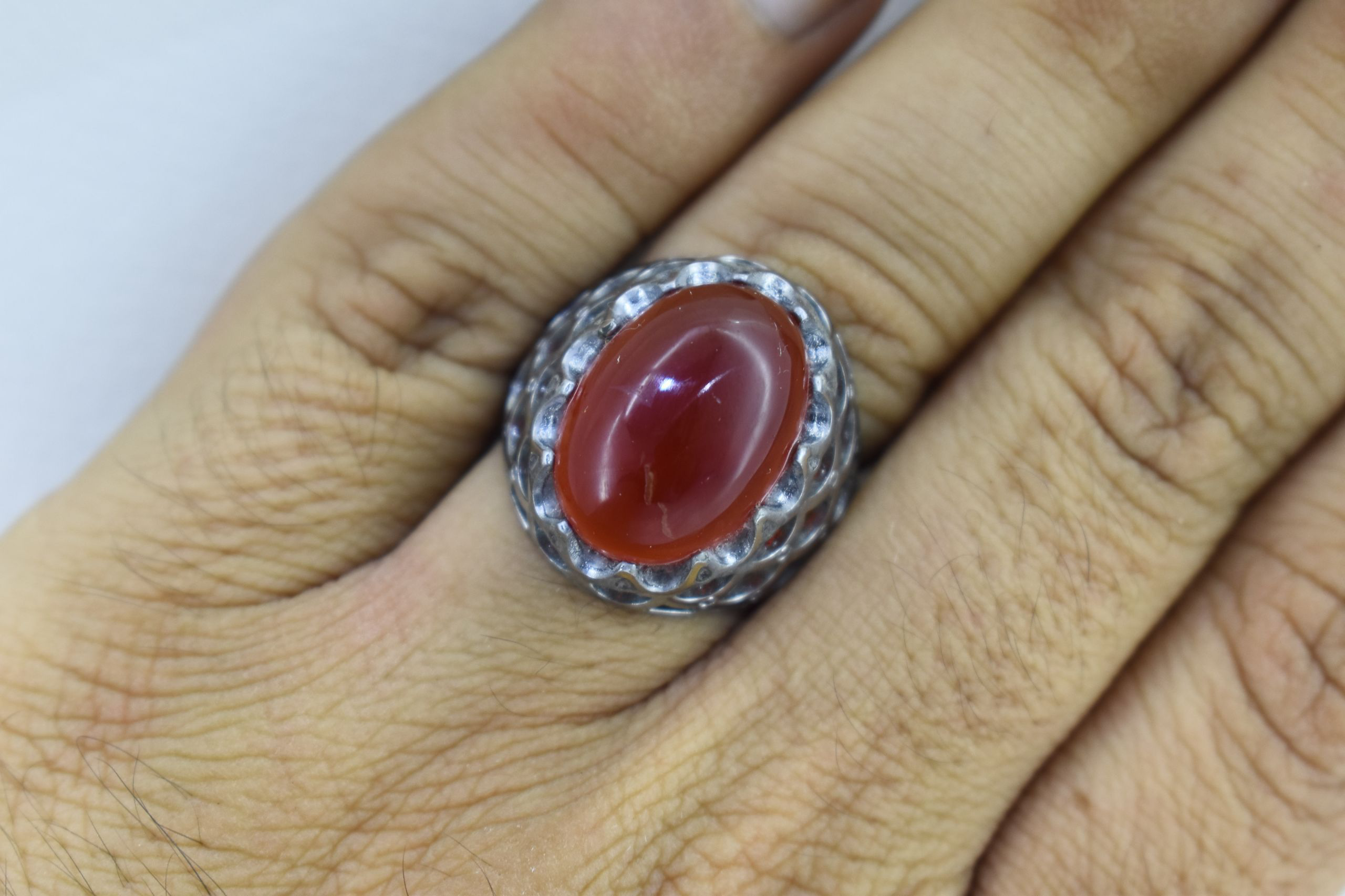 انگشترمردانه عقیق سرخ تیغاب دار بسیارزیبا