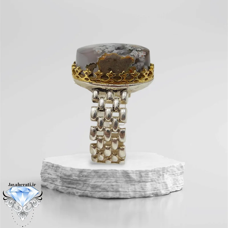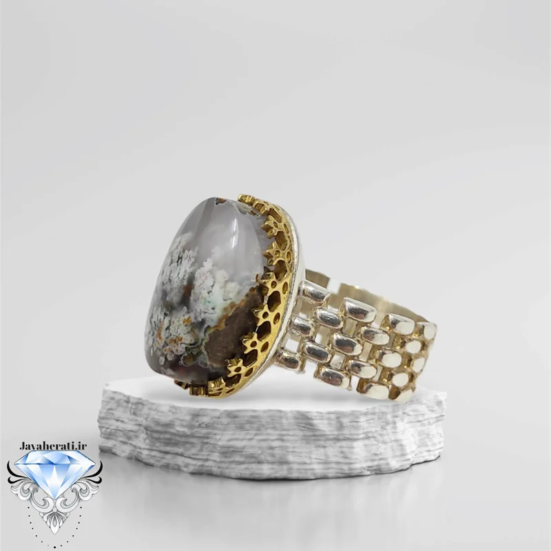 انگشترعقیق شجربهاری هفت رنگ معدنی فوق العاده زیباوارزشمند(بضمانت اصل) رکاب نقره 925طرح رولکسی سایز62/63 وزن11.7گرم