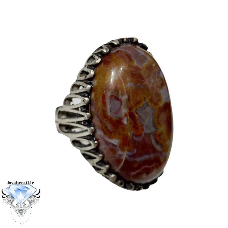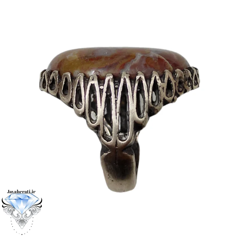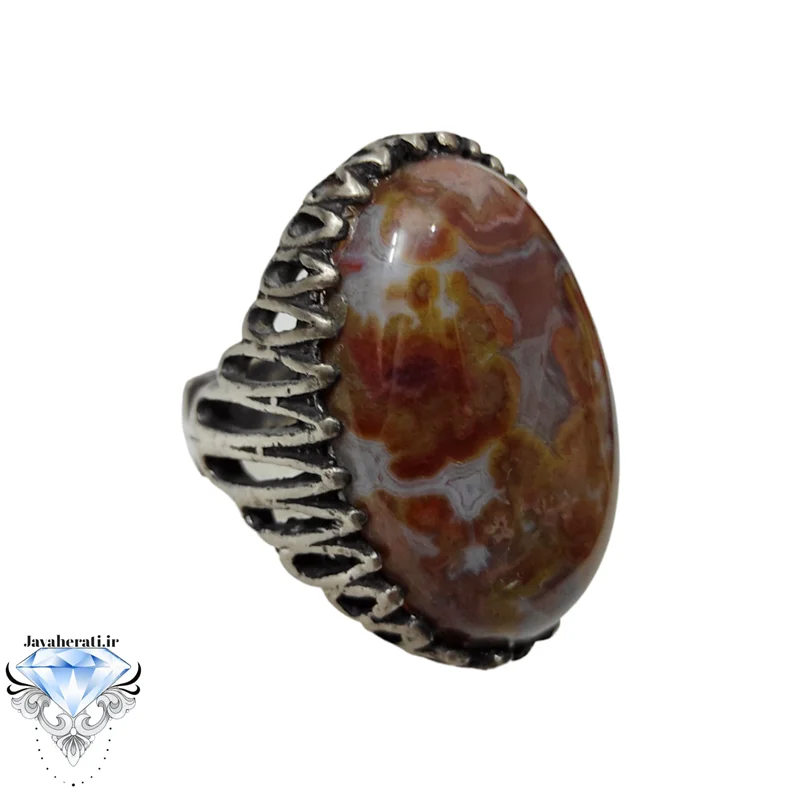 انگشتر عقیق شجردریایی با رگه های سلیمانی معدنی ودرشت(بضمانت اصل)-رکاب زیبا وهنری-سایز62