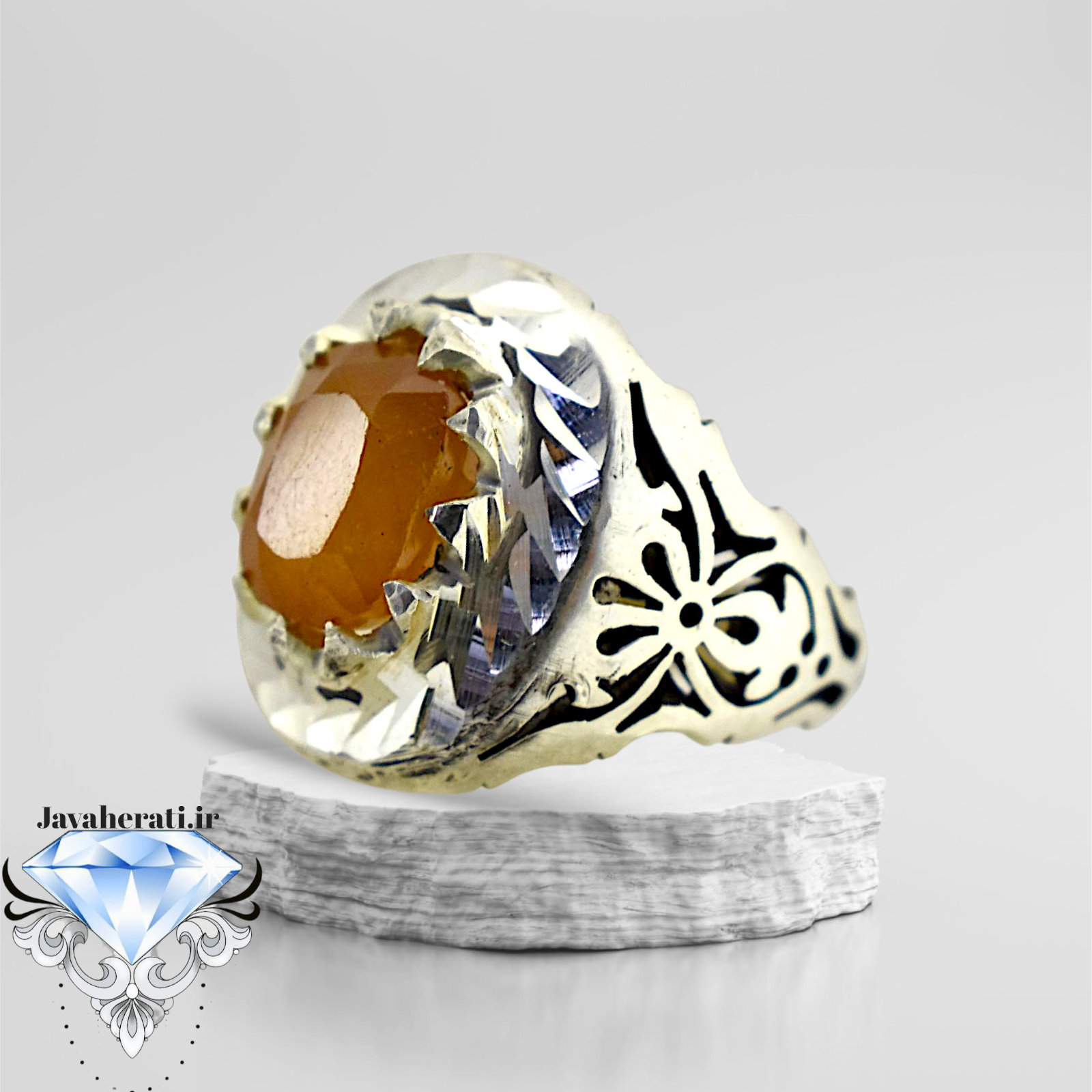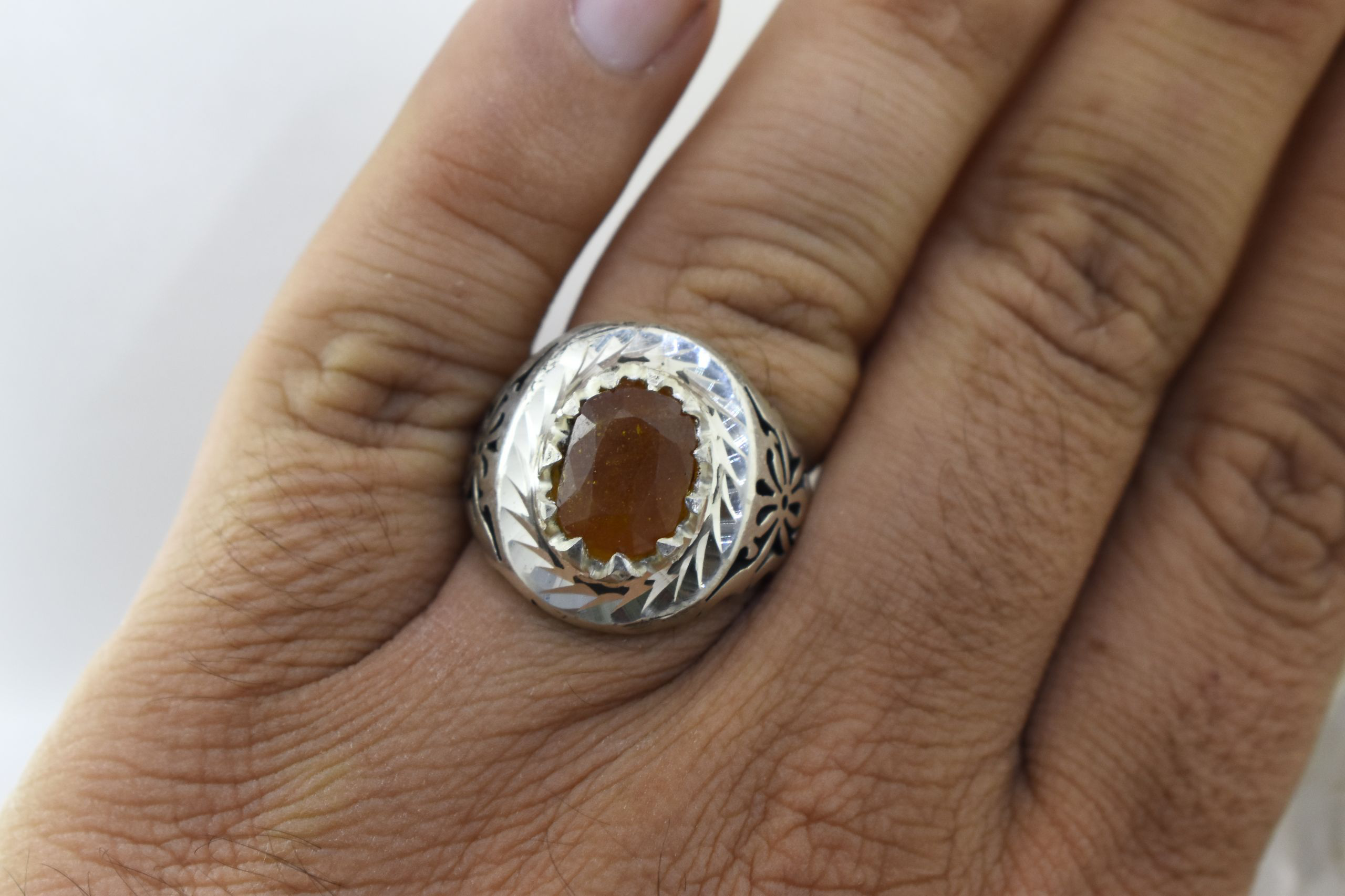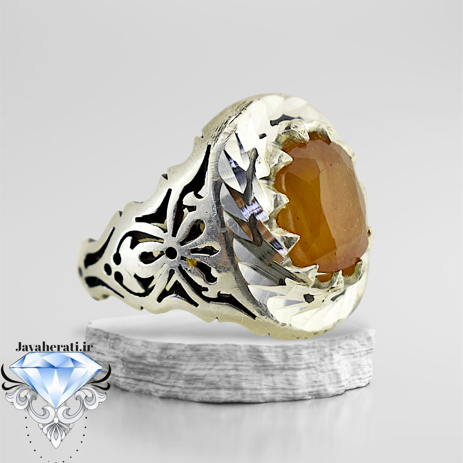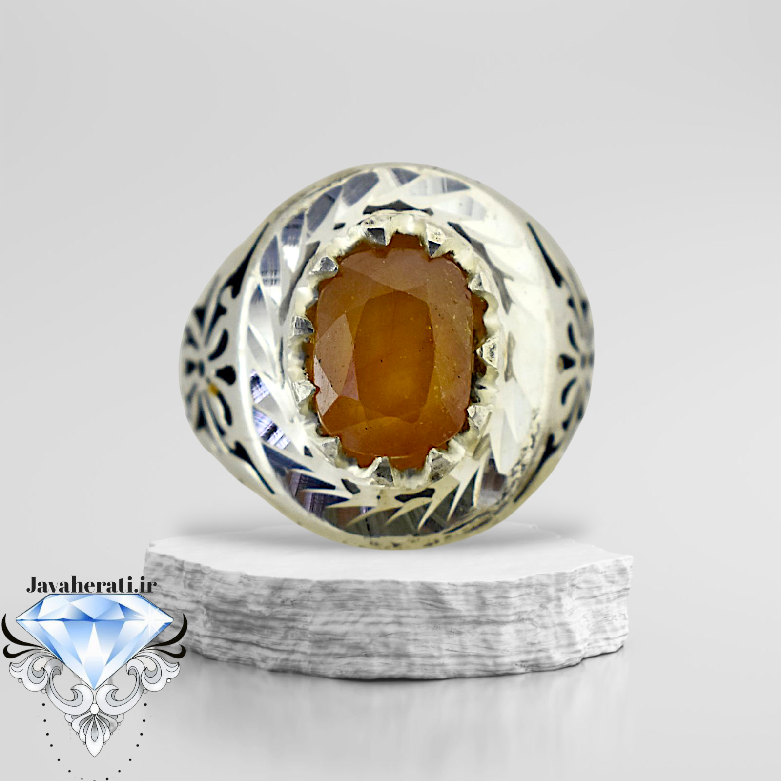 انگشتر نقره مردانه یاقوت زرد آفریقایی